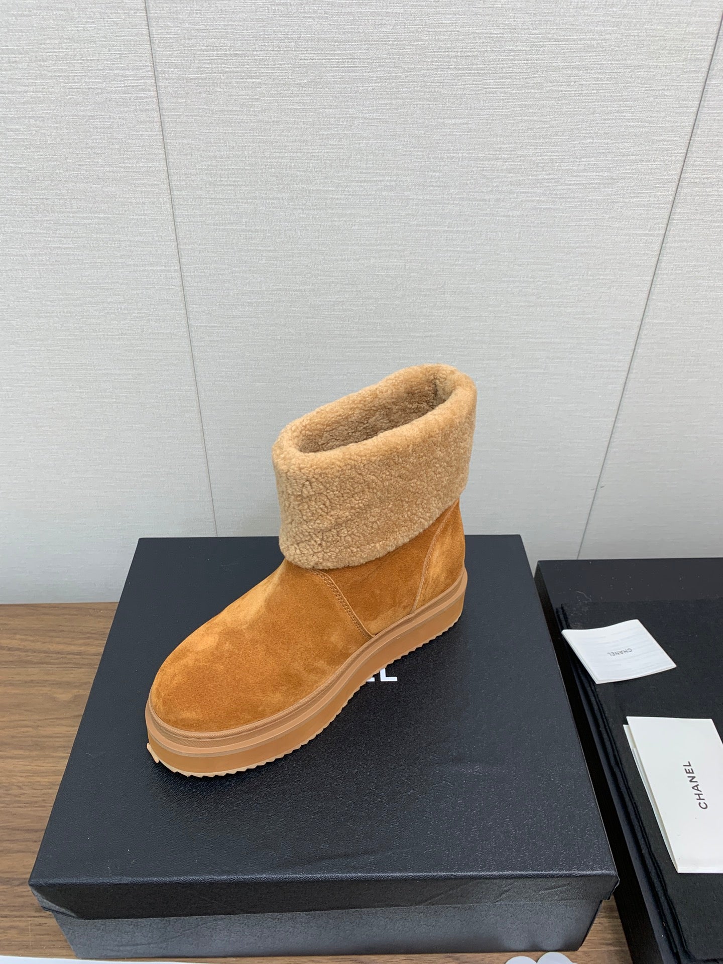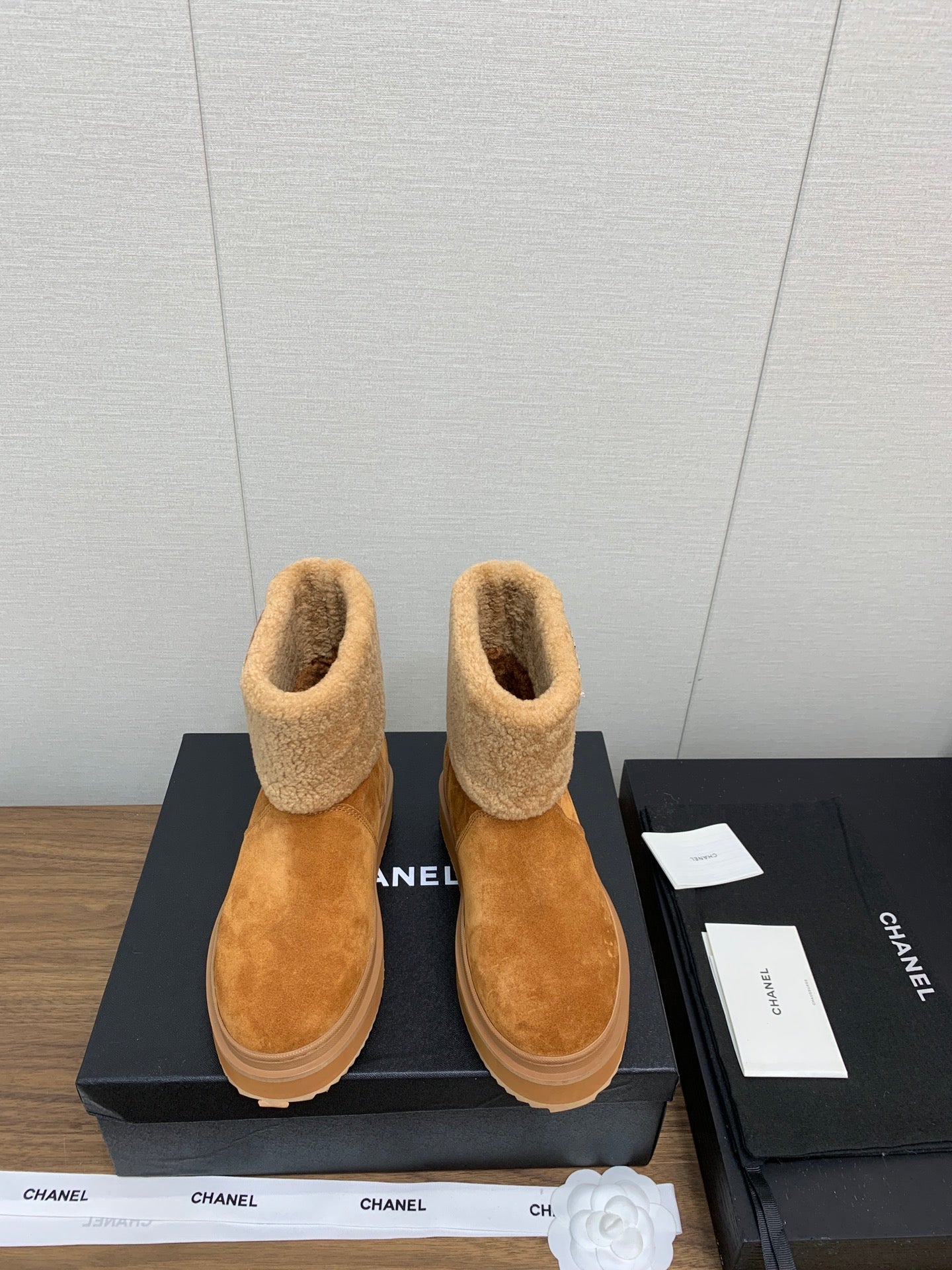 CC CHUNKY BOOTS IN BISQUE BEIGE SMOOTH FLEECE AND BLACK CALFSKIN