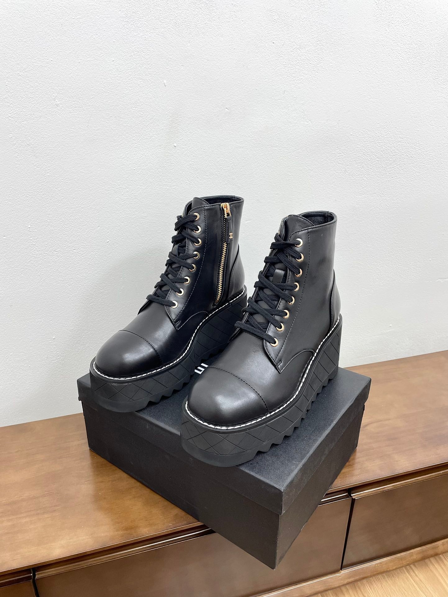 CC CHUNKY SKATEBOARDING BOOTS IN BLACK SMOOTH FLEECE AND CALFSKIN