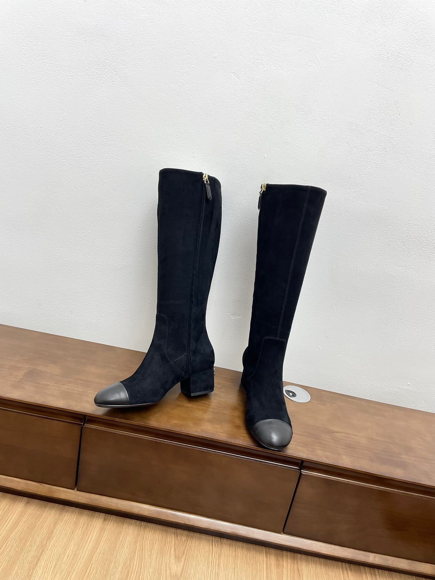 CC High Boots 45mm Black Denim Fabric And Quilted Cowhide