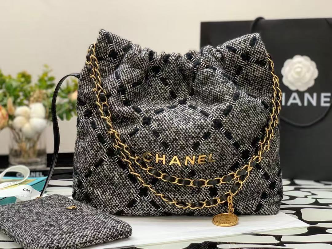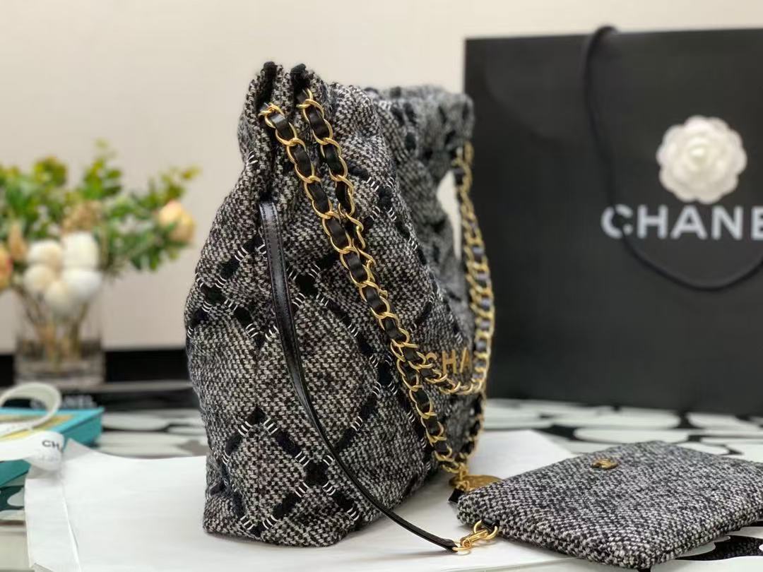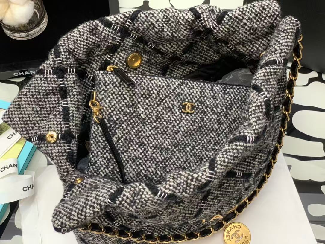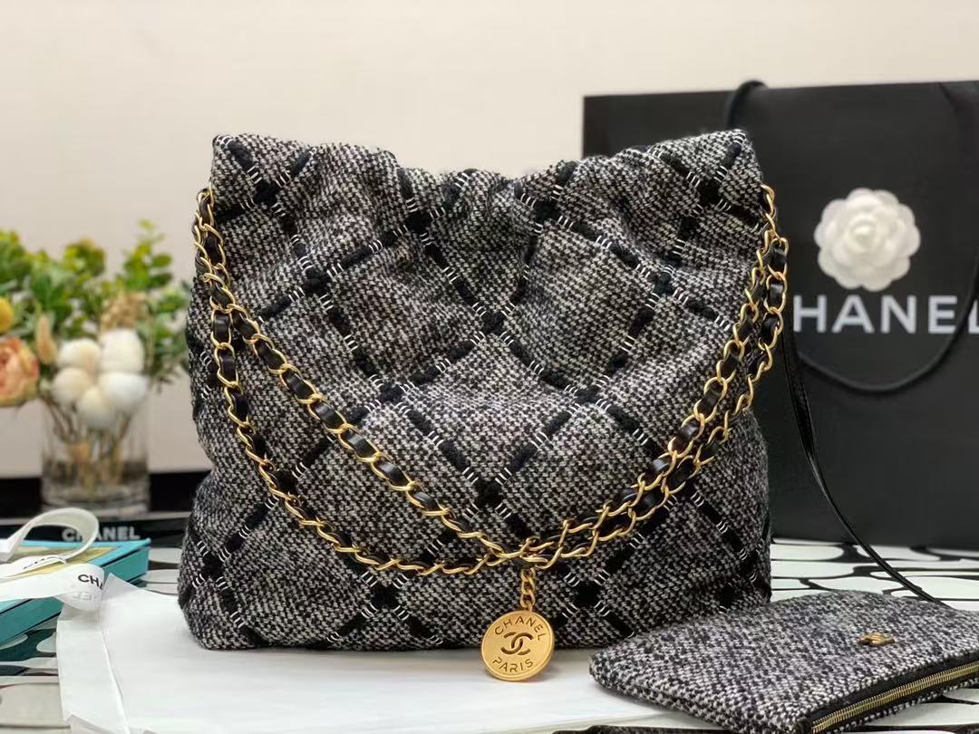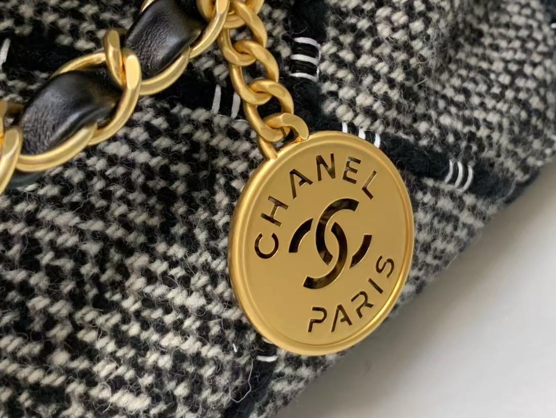 CC Hobo 22 Bag 35cm Black Ecru Tweed Gold Hardware