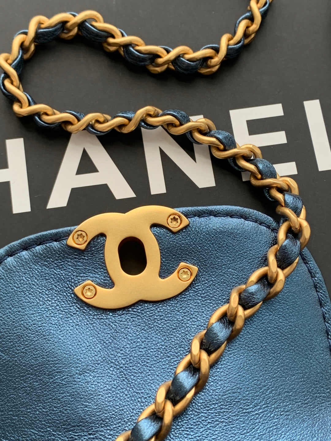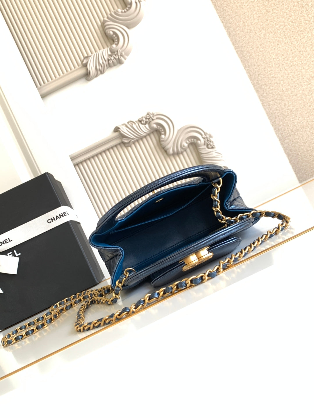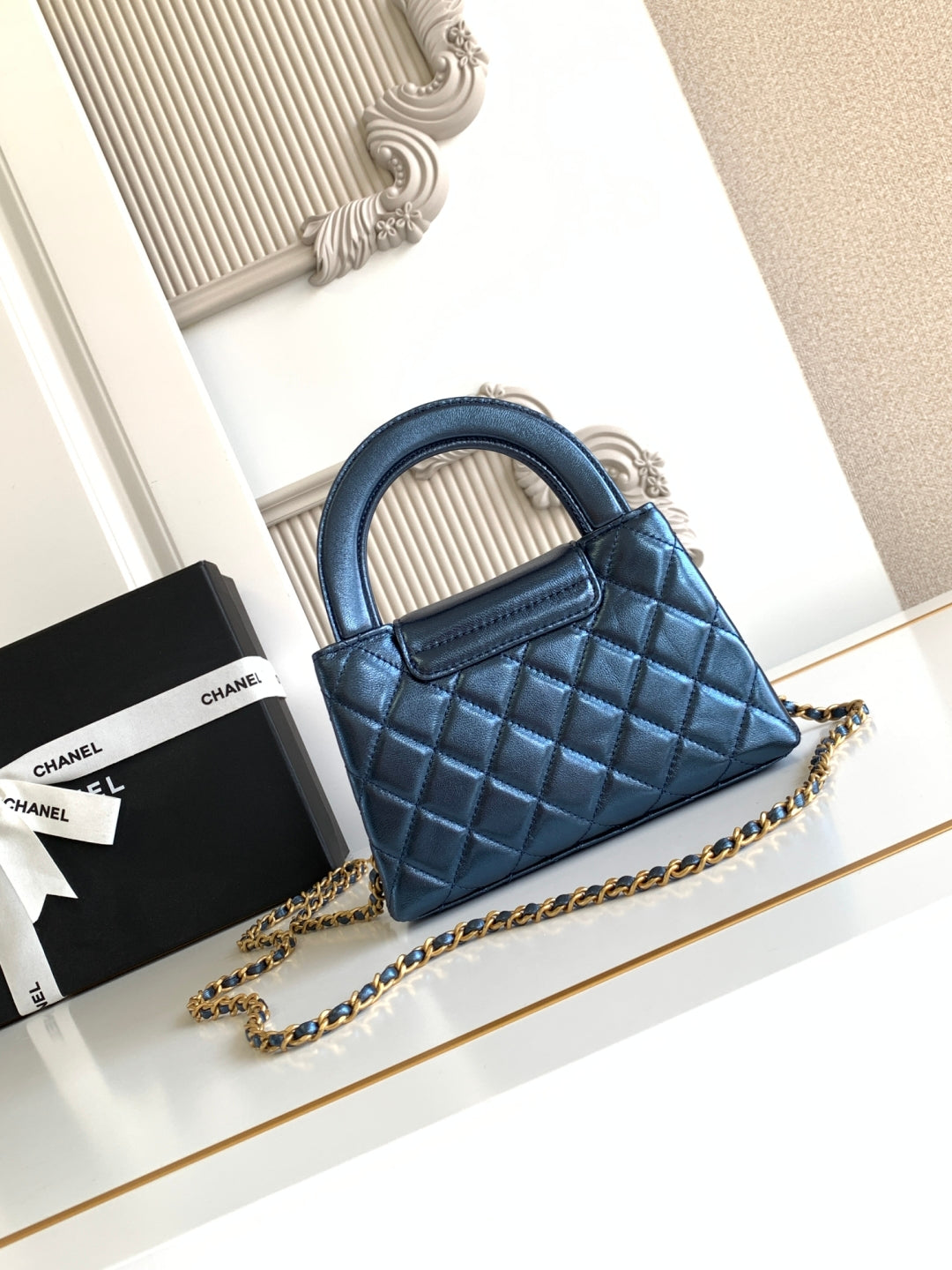 cc 24a nano 19cm kelly shopper bag navy blue lambskin