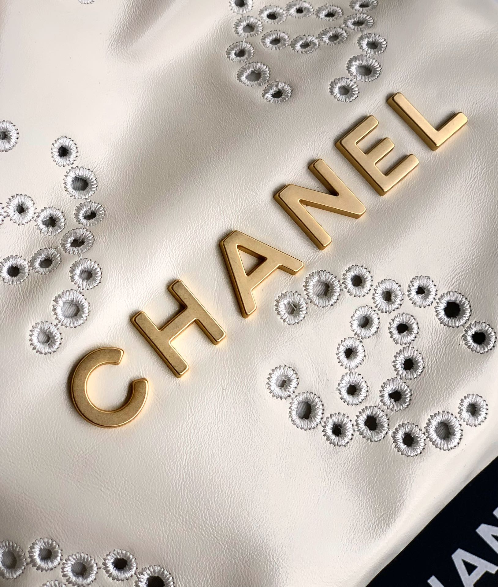 CC Mini 22 Bag 23cm Gold Woven Cowhide Bag
