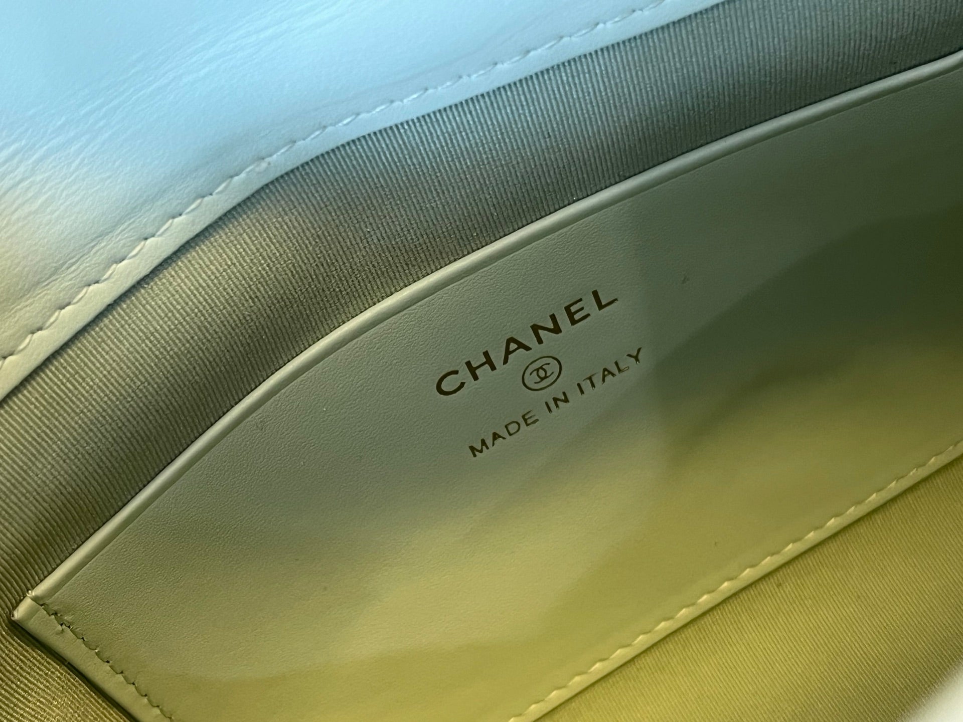cc 24p mini flap bag 17cm white lambskin pearl chain