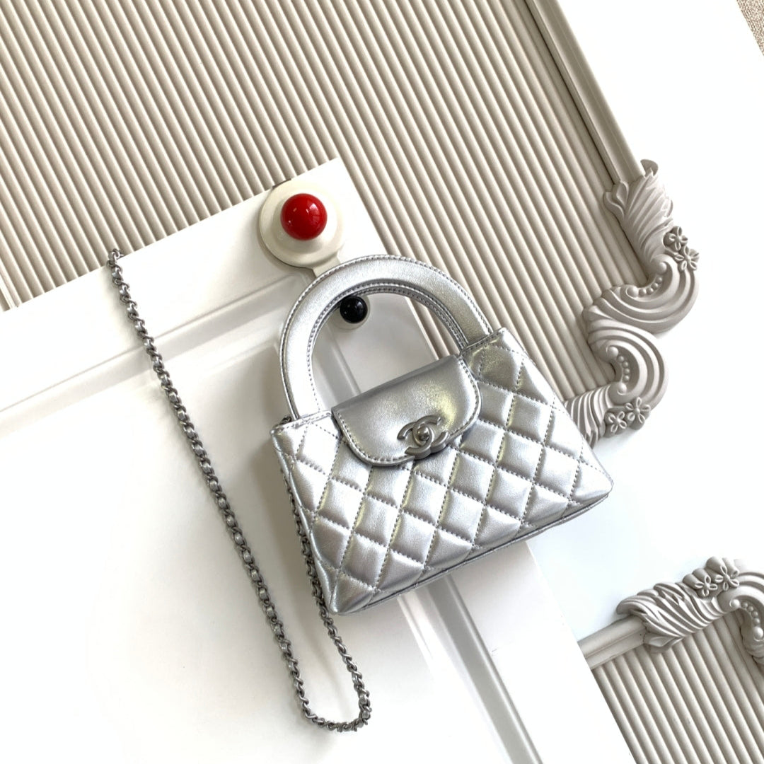 cc 24a nano 19cm kelly shopper bag sliver metallic lambskin