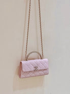 CC 25S Kelly Bag Top Handle 18cm Pink Grained Calfskin