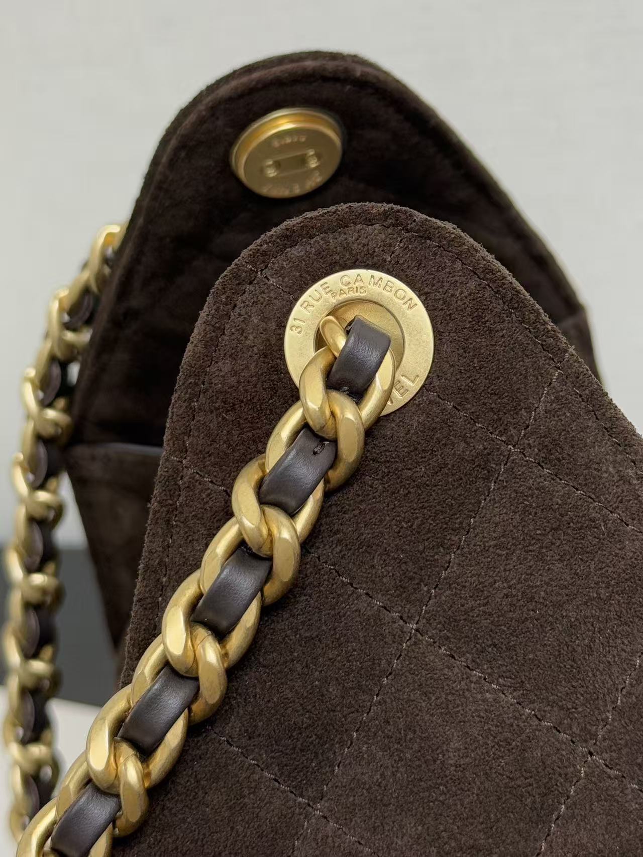CC 25s Hobo Bag Brown Gold Suede