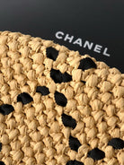 CC Braided Shopping Bag Double C logo Beige Black Raffia