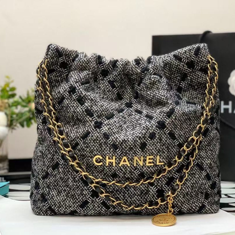 CC Hobo 22 Bag 35cm Black Ecru Tweed Gold Hardware