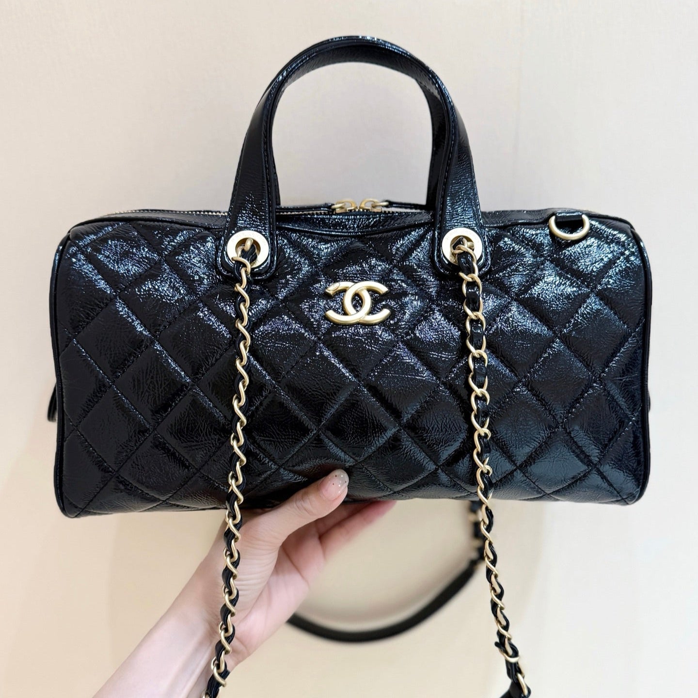 CC 25s Maxi Bowling Bag Black Patent Crumpled Calfskin