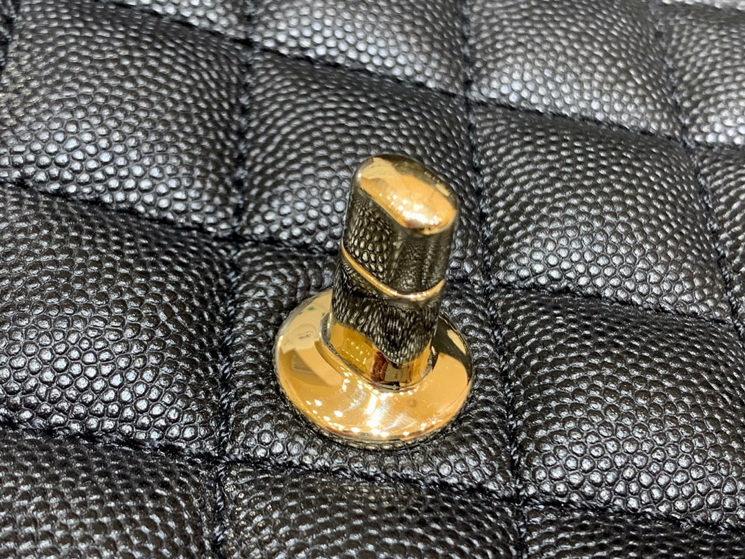 CC 24K Coco Hanle Mini 19cm Black Grained Calfskin Gold Hardware