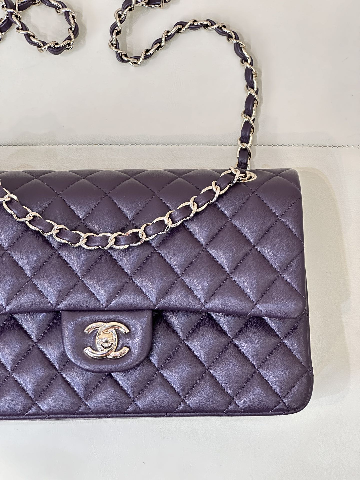CLASSIC FLAP 25CM VIOLET LAMBSKIN LIGHT GOLD HARDWARE