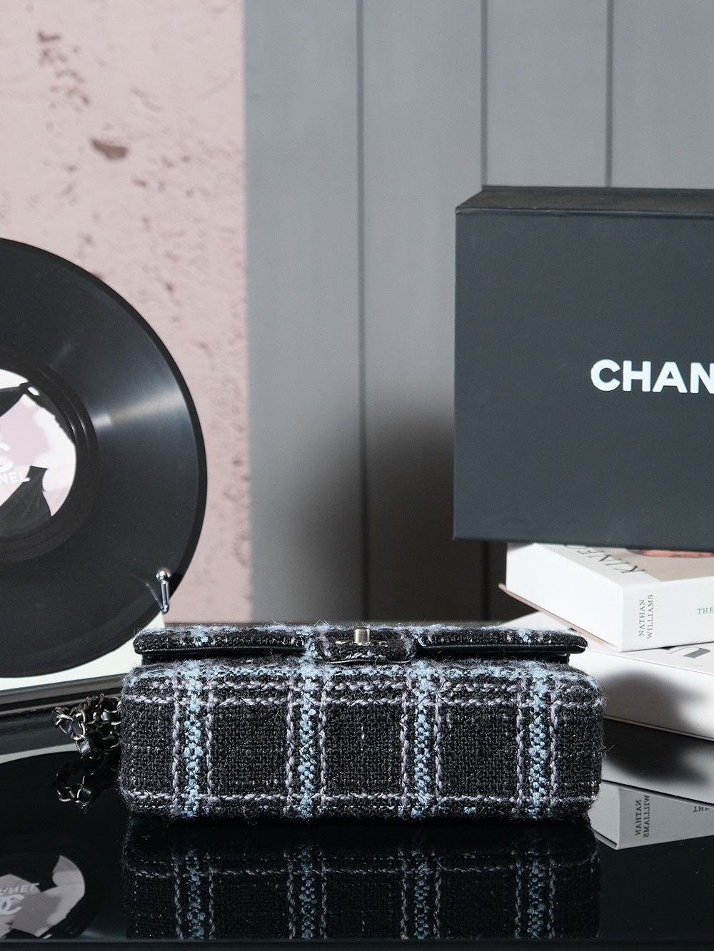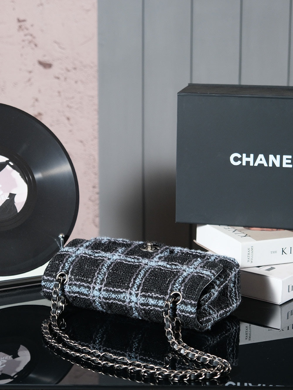 24K Flap Bag 20cm Blue Black Stripe Tweed