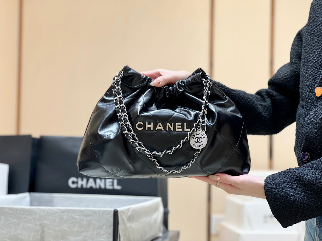 CC 19 HOBO BAG 29CM BLACK GOATSKIN GOLD HARDWARE