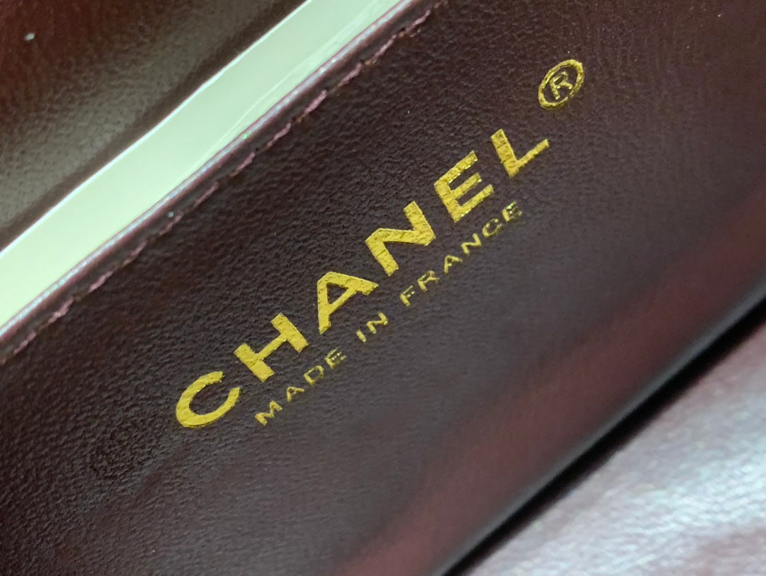 MINI RECTANGLE FLAP BAG 20CM BURGUNDY LAMBSKIN GOLD HARDWARE