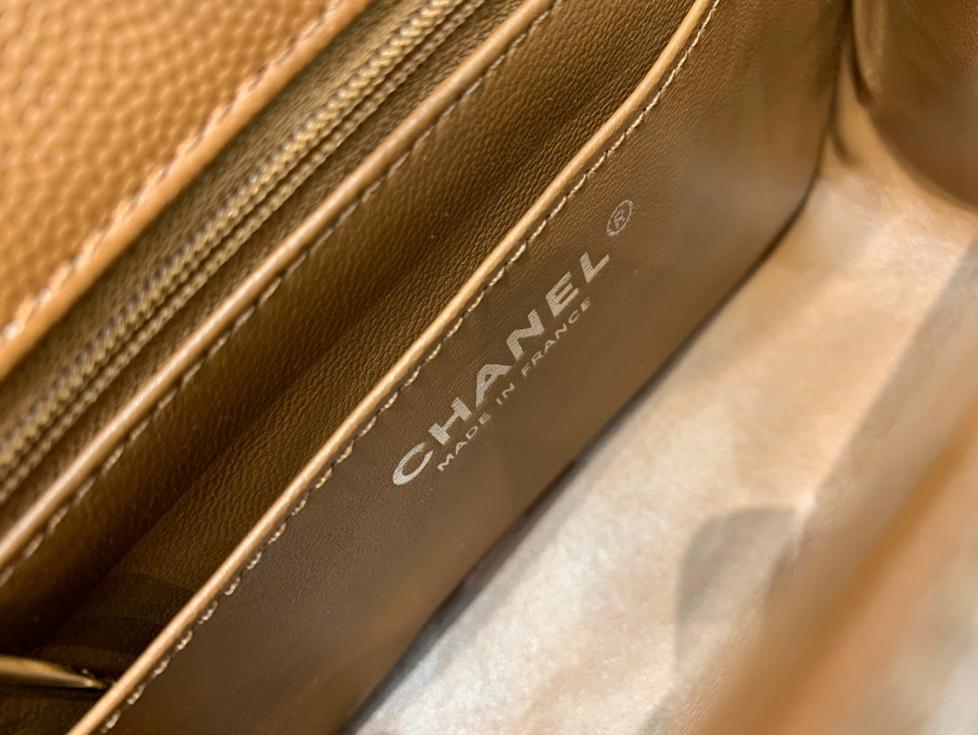 MINI SQUARE FLAP BAG 17CM BROWN CAVIAR SILVER HARDWARE