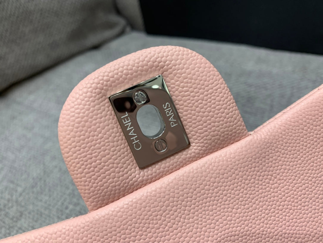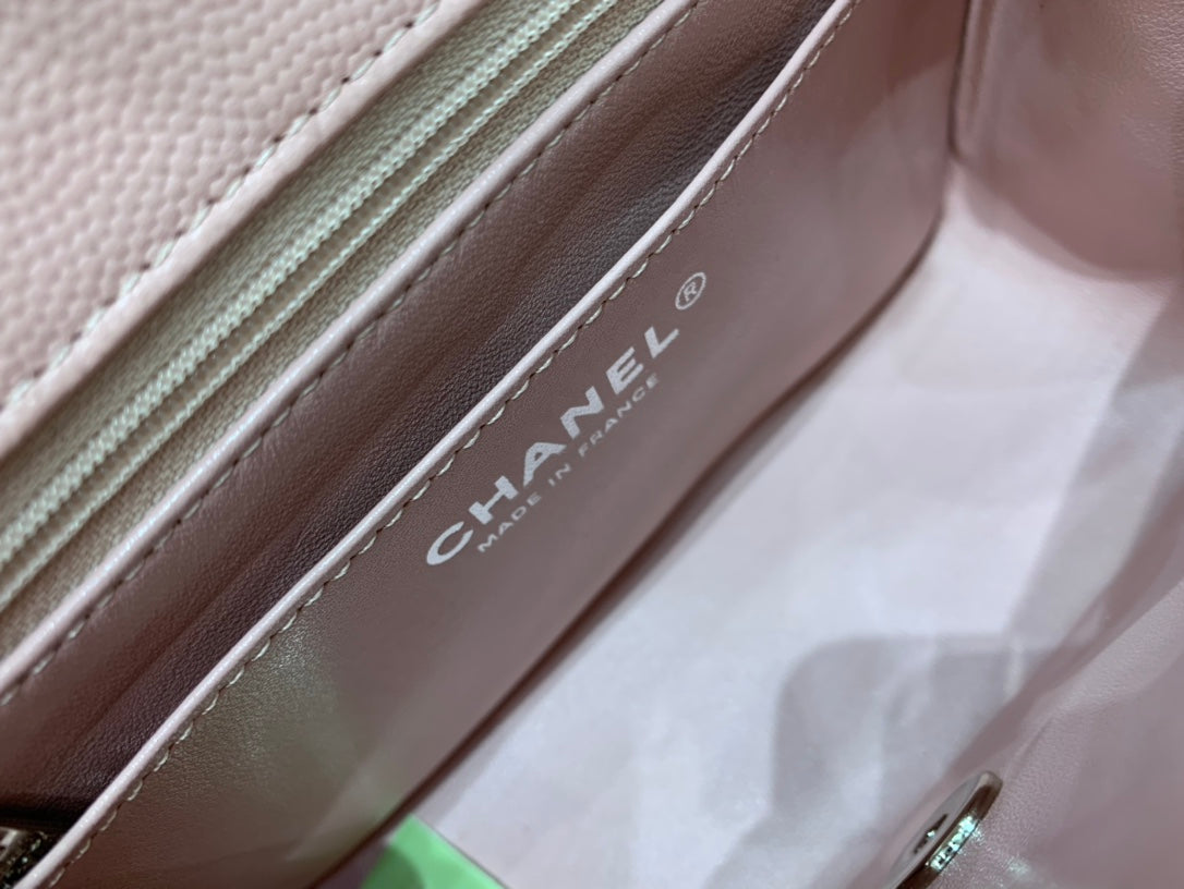 MINI SQUARE FLAP BAG 17CM PINK CAVIAR SILVER HARDWARE