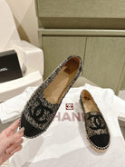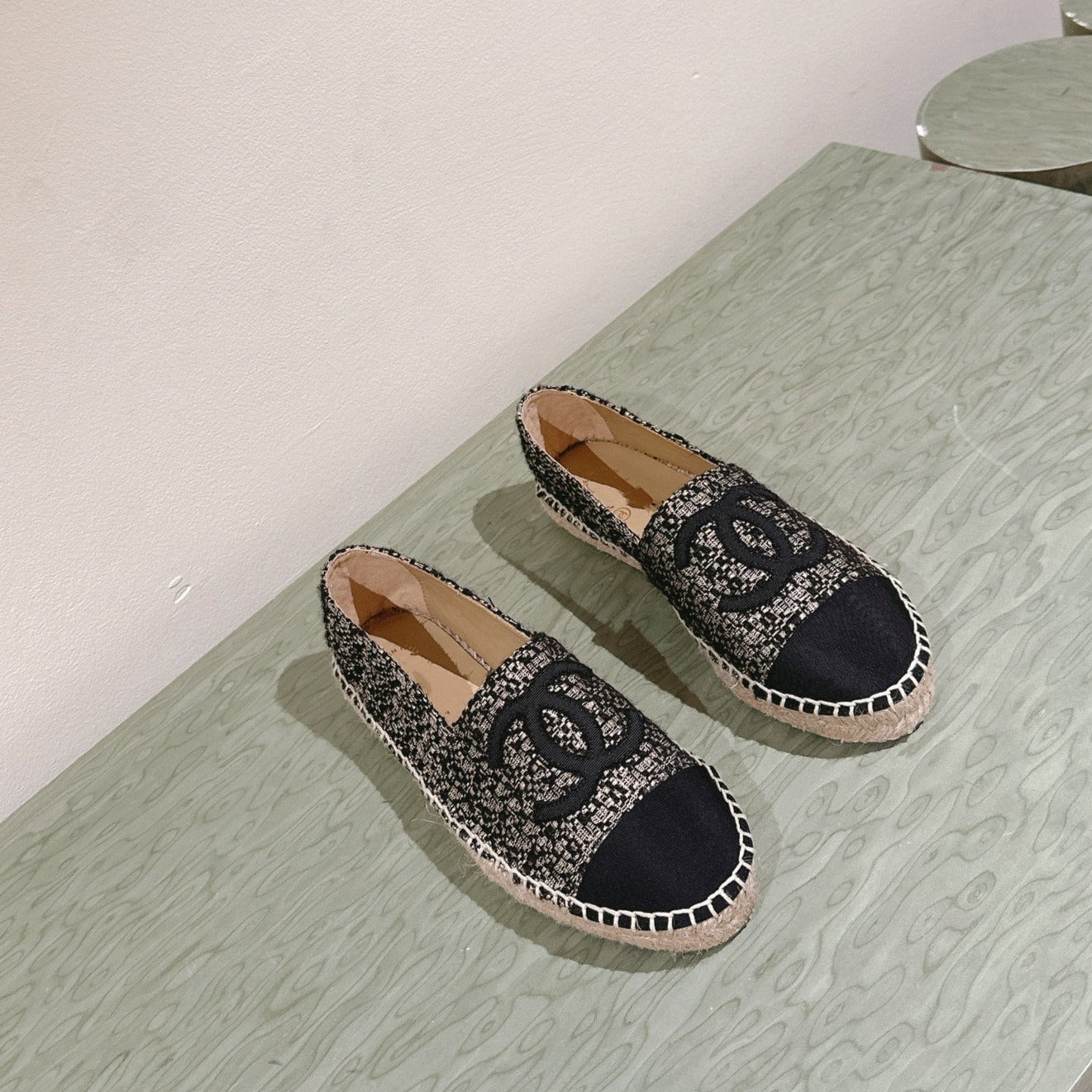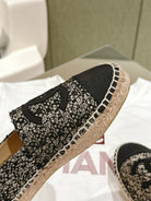 espadrilles black silver tweed black canvas