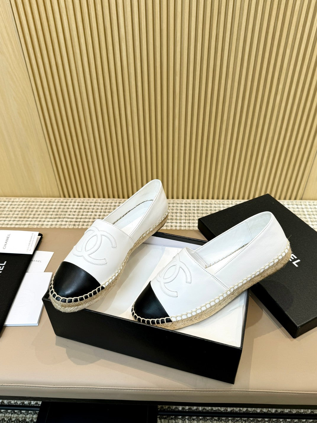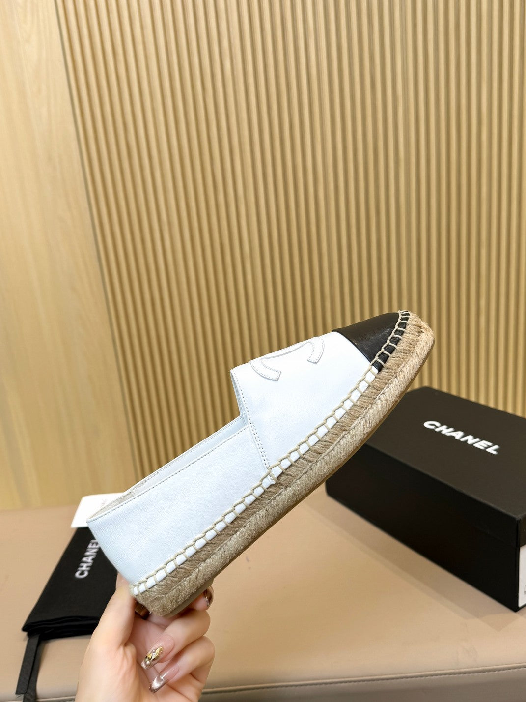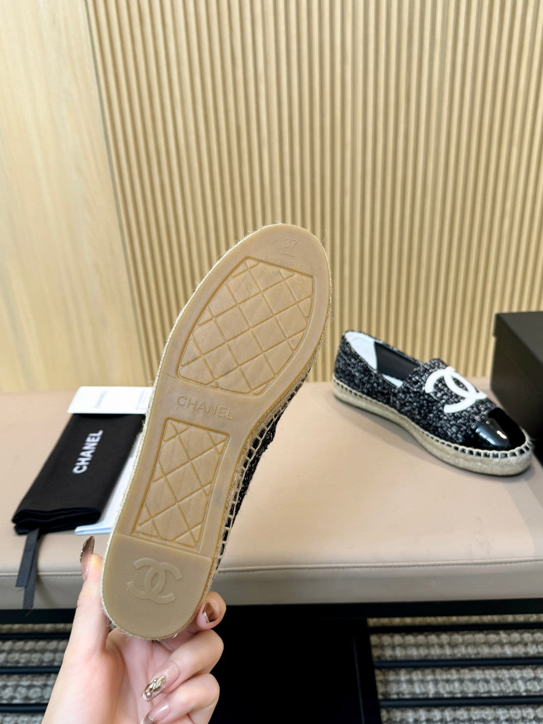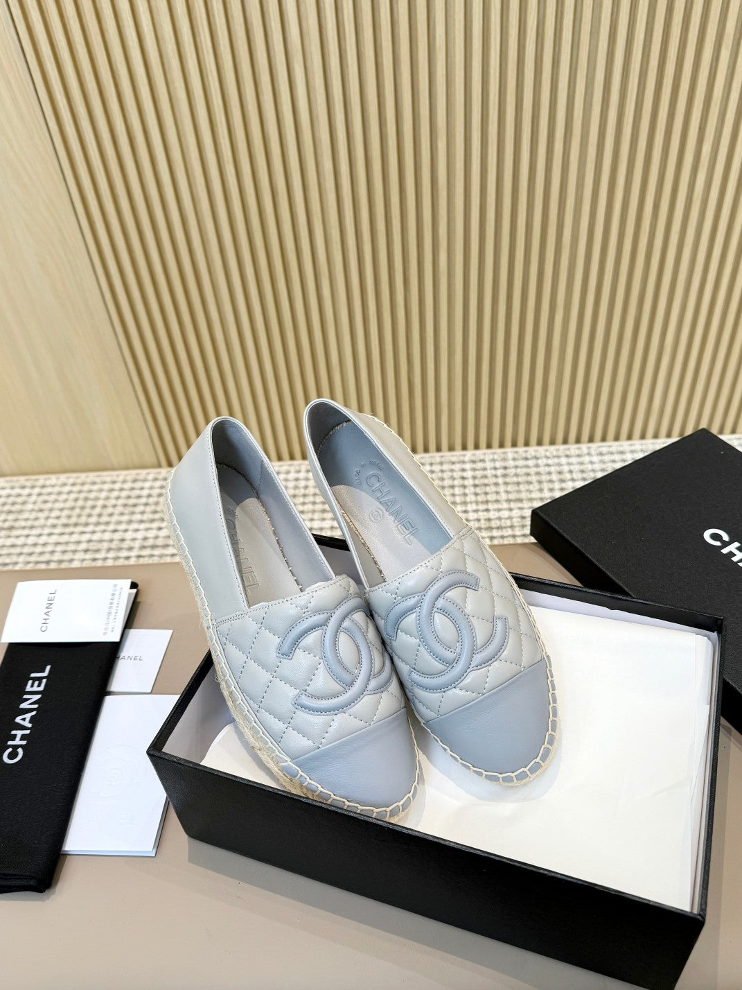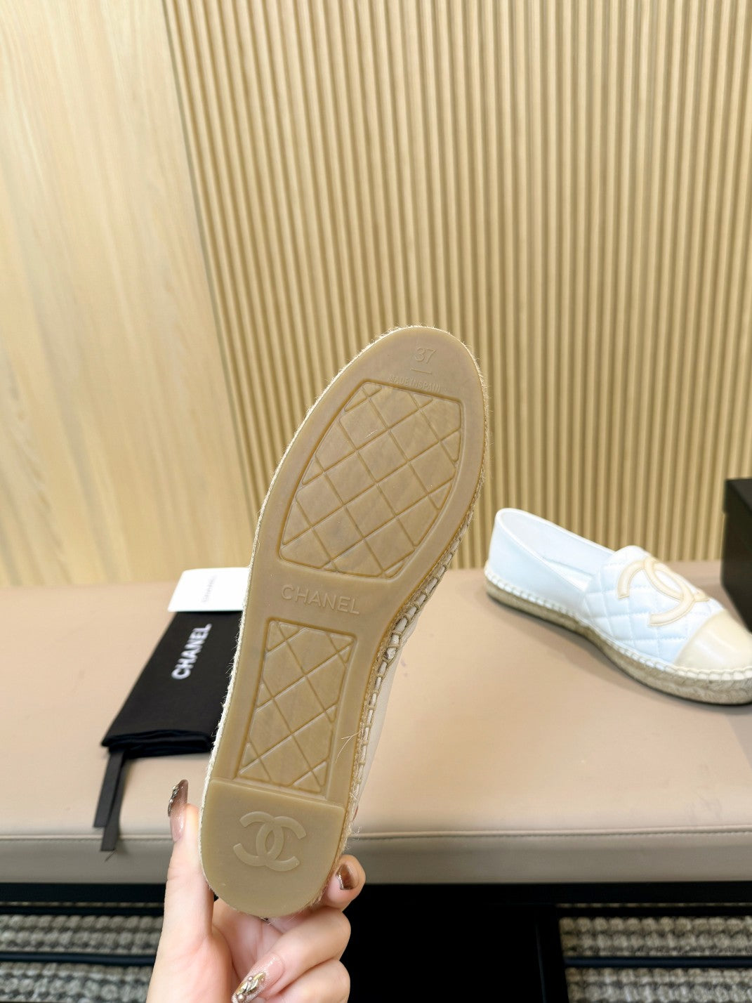 espadrilles beige black quilted calfskin