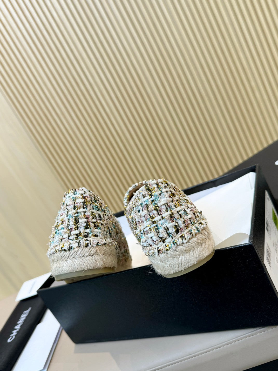 cc espadrilles multicolor tweed gold metalic calfskin