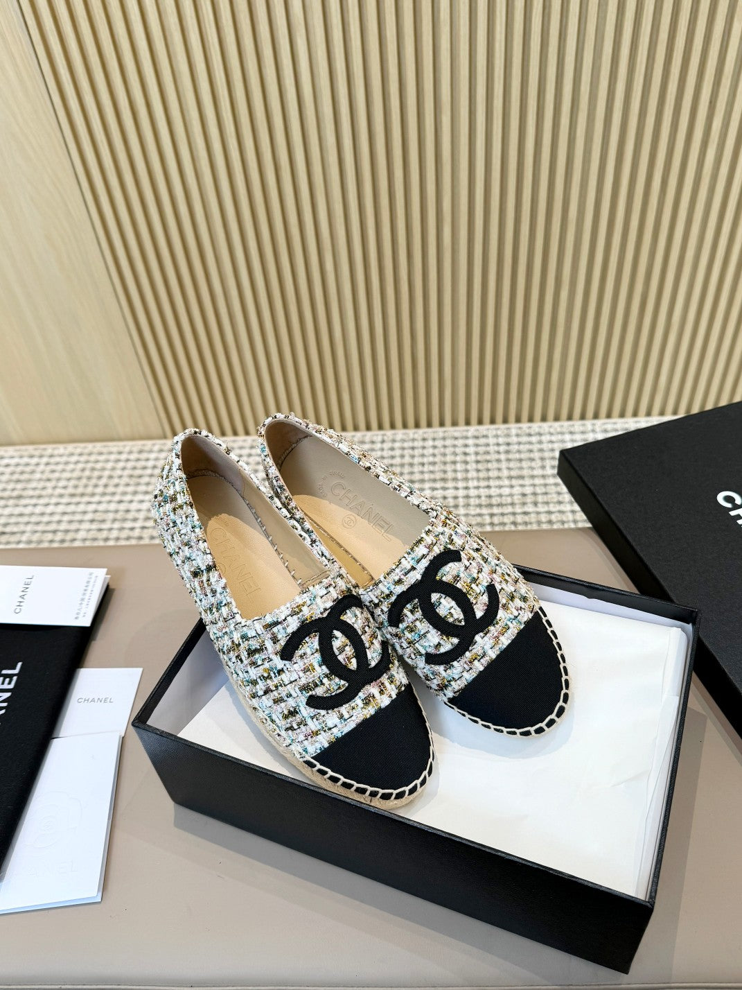 cc espadrilles black tweed cloth calfskin