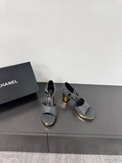 BLOCK HEEL SANDALS BLACK POLKA DOT SHEEPSKIN