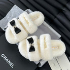 CC DAD SANDAL MULE IN WHITE FLEECE WITH GOLD HARDWARE