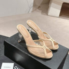 mule sandal 75 beige fabric dark beige calfskin