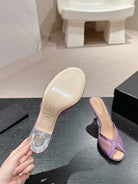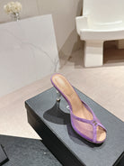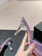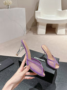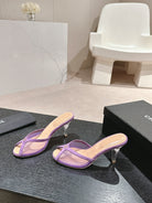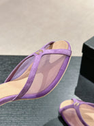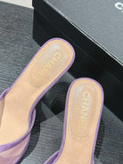 mule sandal 75 purple fabric dark beige calfskin