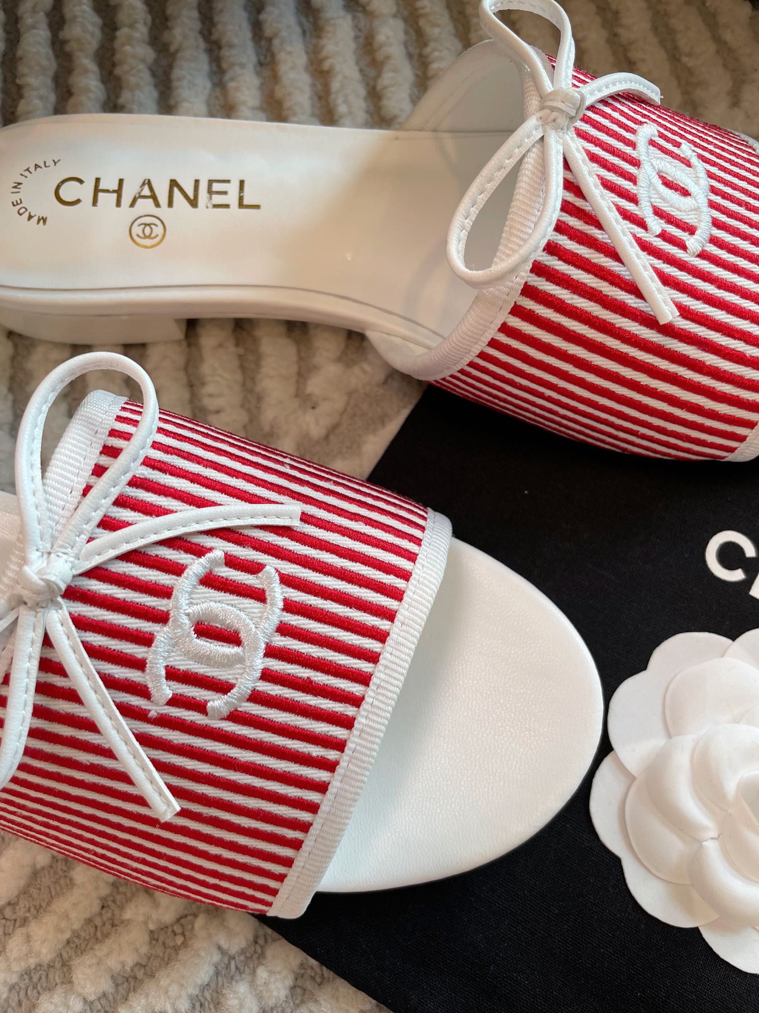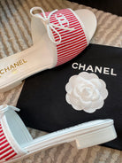 mule sandal white red embroidered fabric calfskin