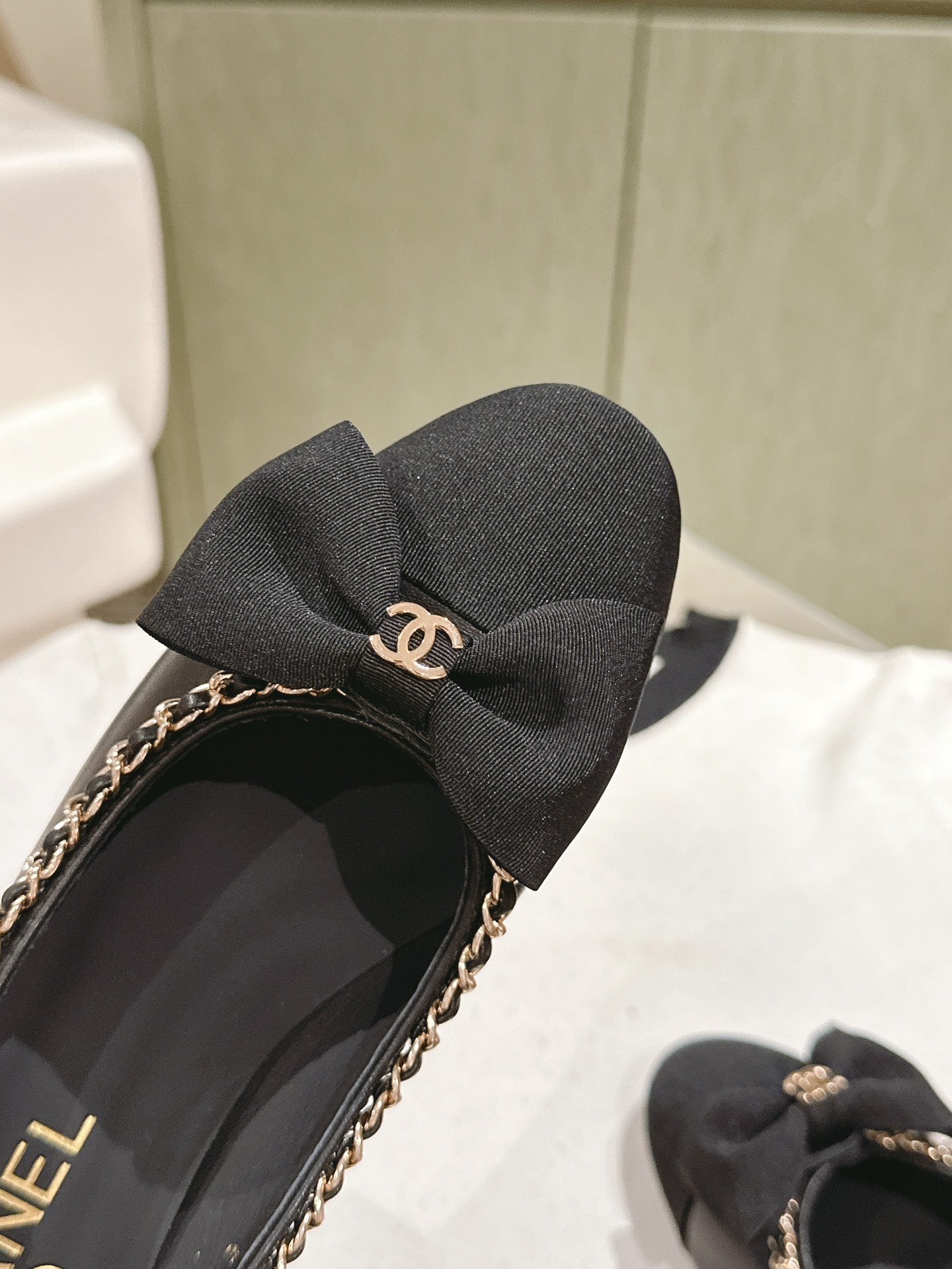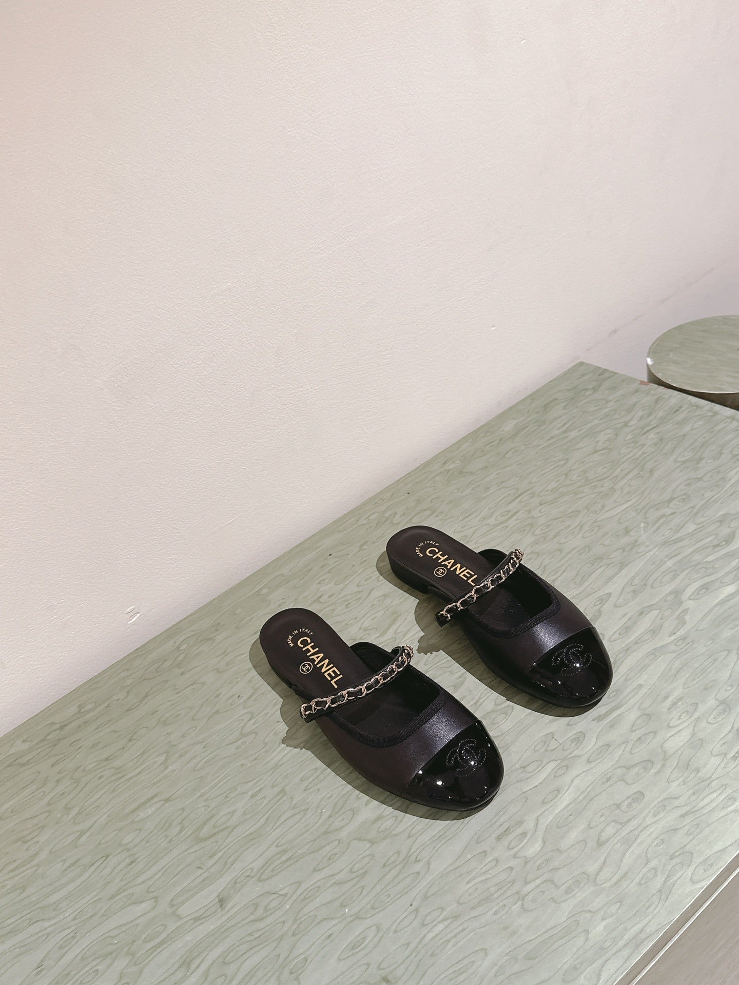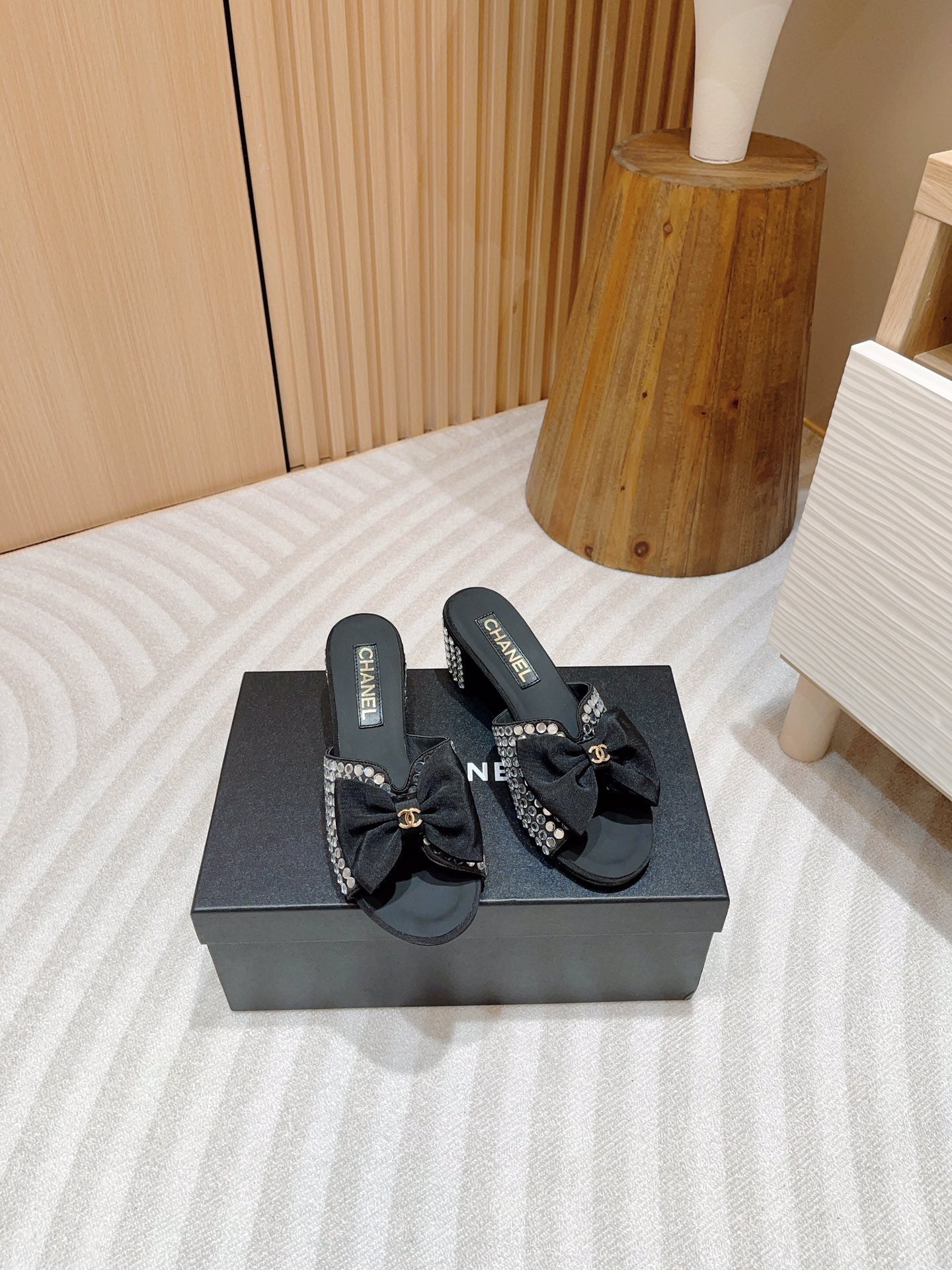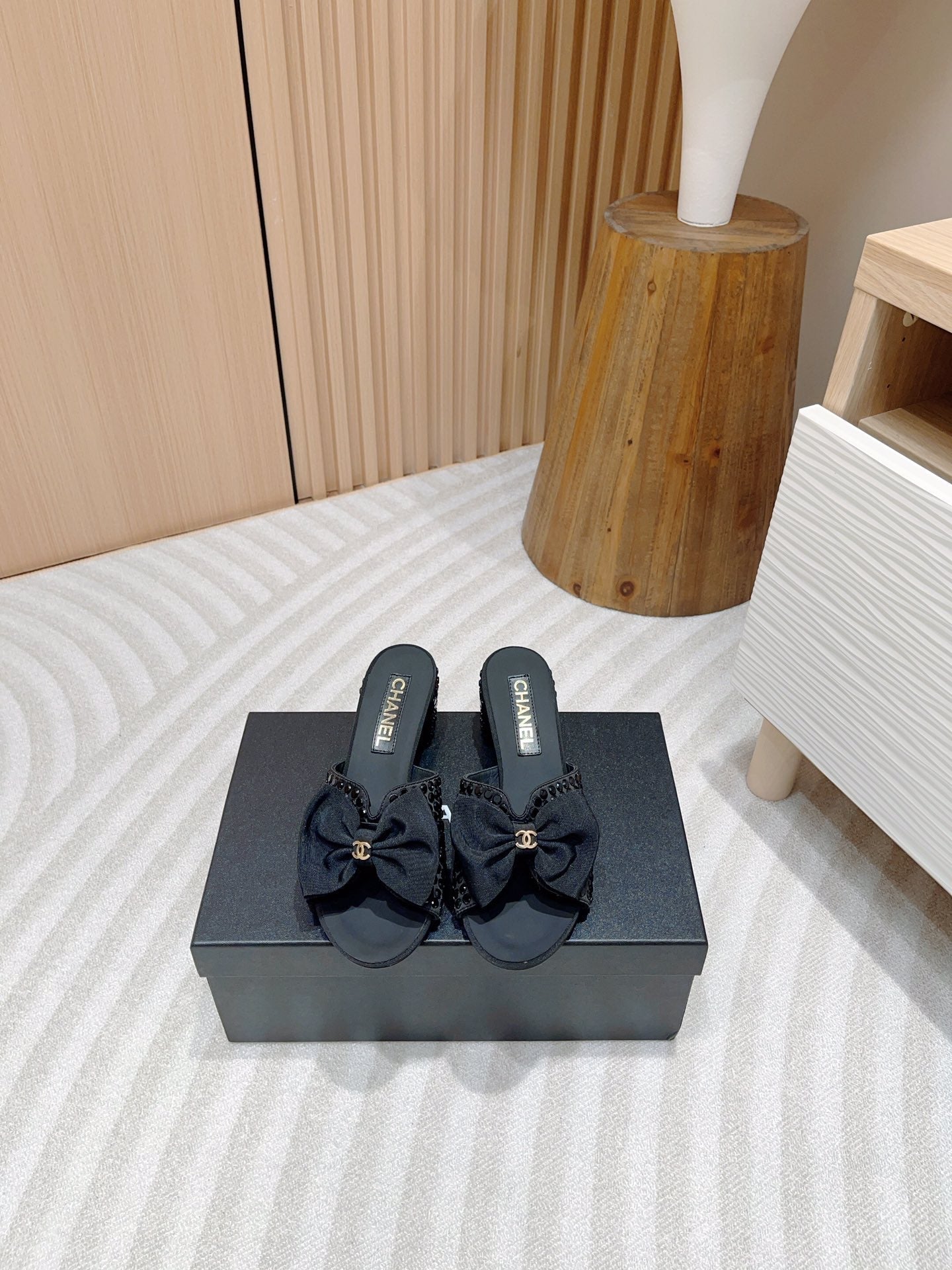 CC SLIPPERS WITH SILK BOW IN BLACK COWHIDE