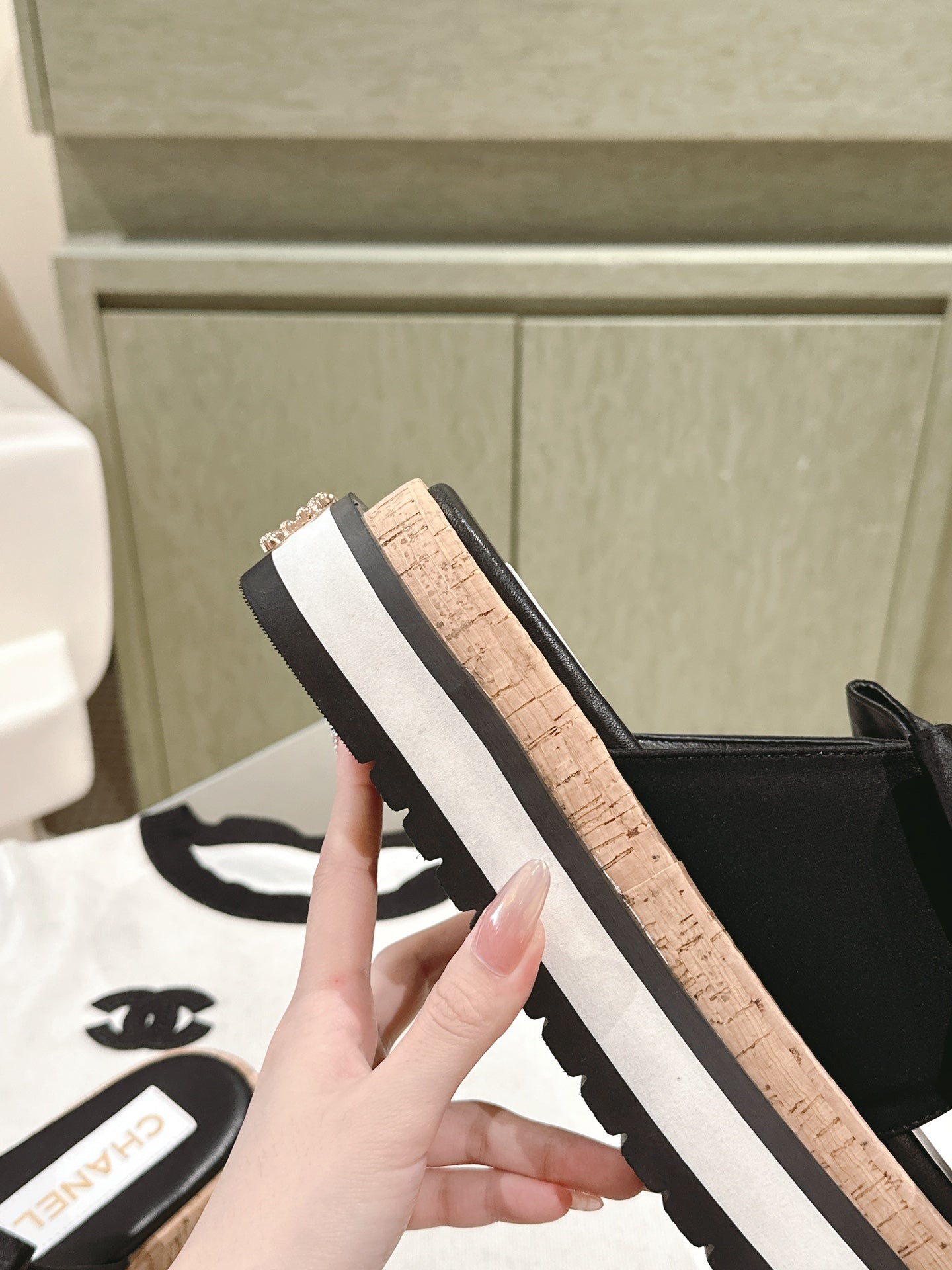 CC CLASSIC WEDGE SANDALS IN BLACK FABRIC