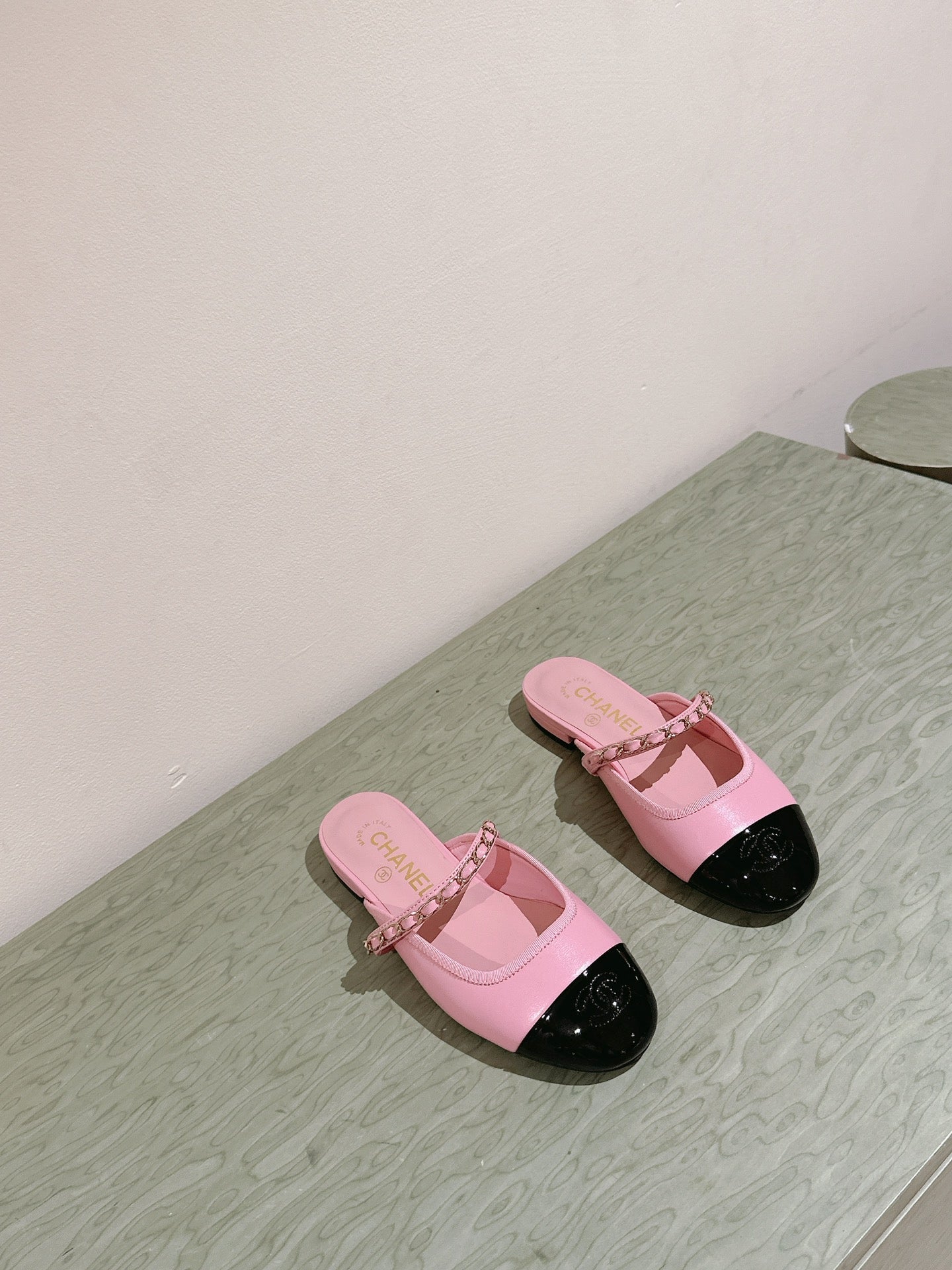 CC SLIPPERS WITH SILK BOW IN BEIGE ALMOND COWHIDE