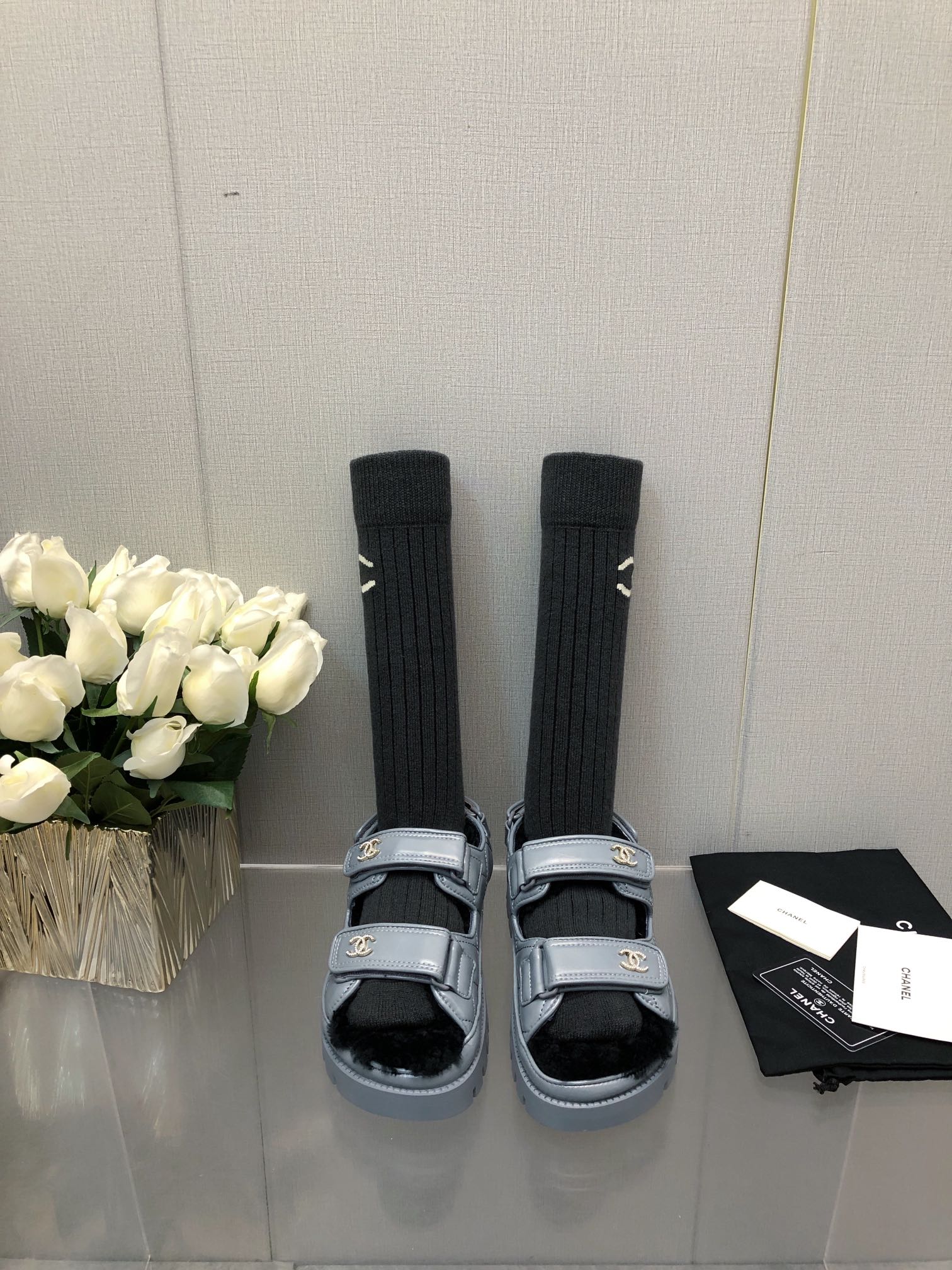 CC CLASSIC WEDGE SANDALS IN BLACK LAMBSKIN SUEDE