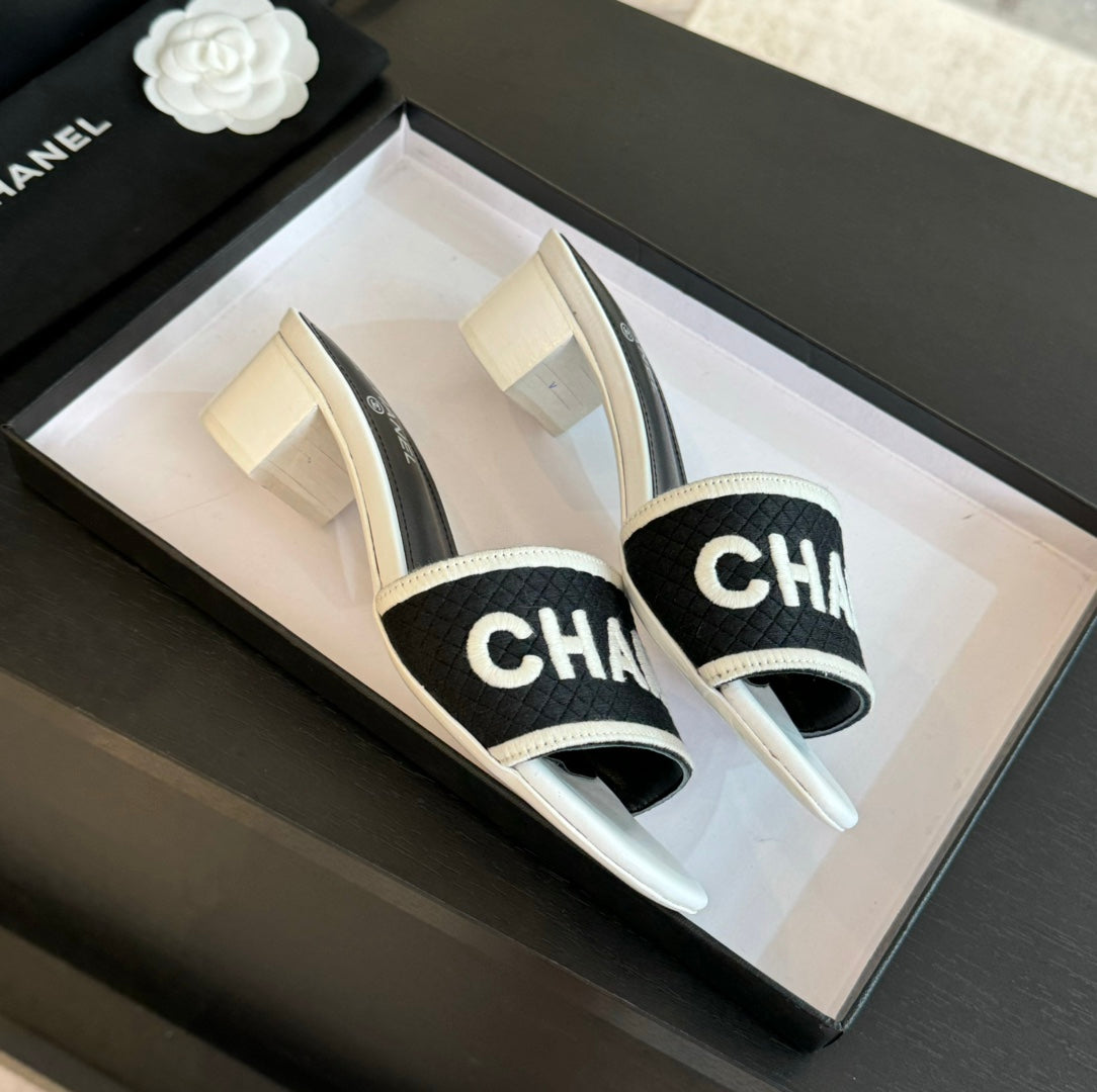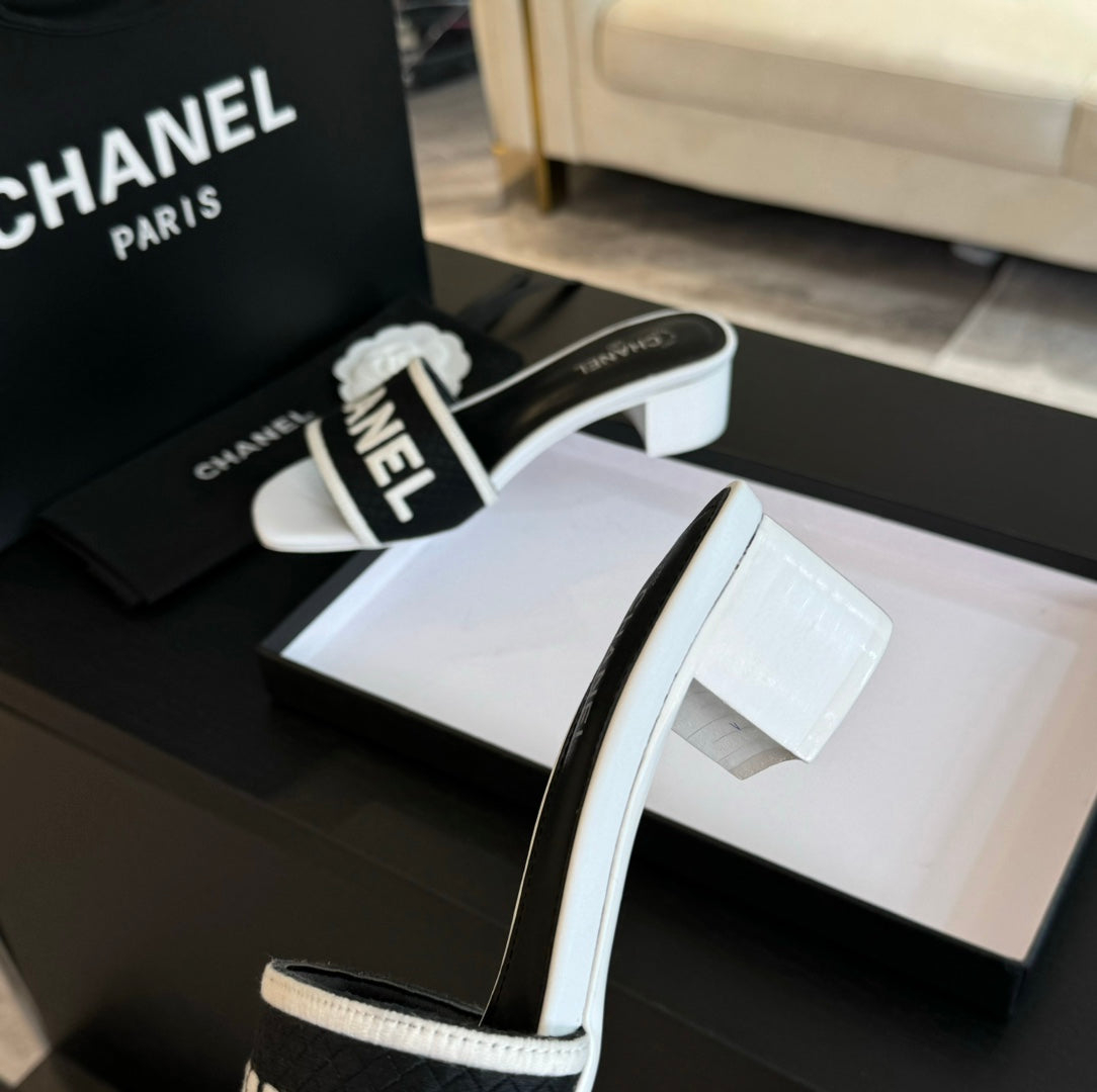 CC HIGH HEELS BLACK CALFSKIN AND FABRIC