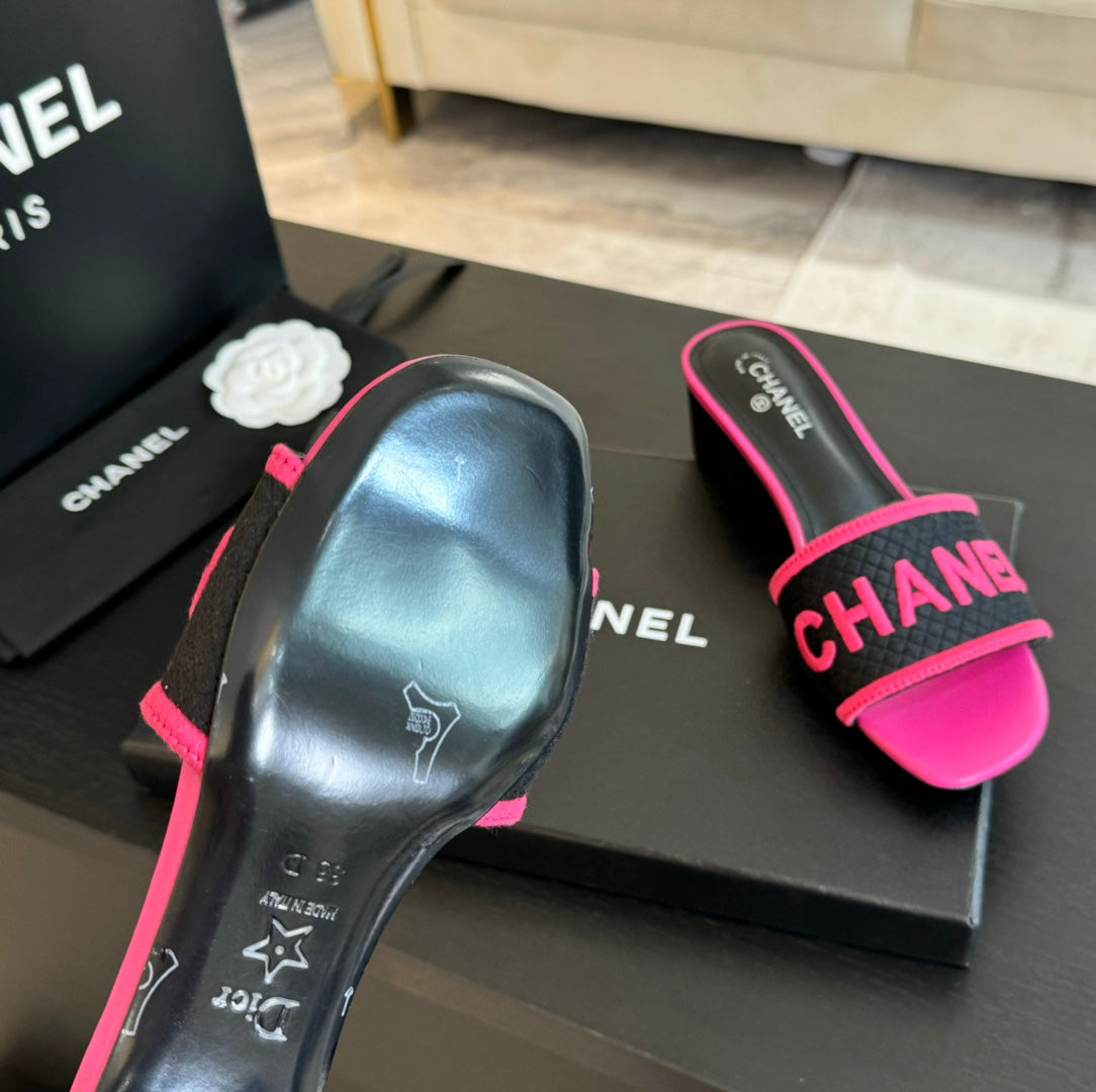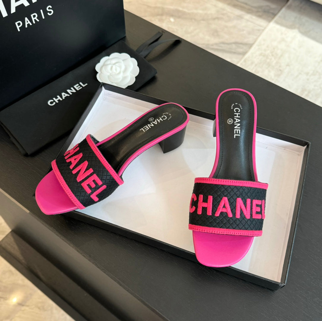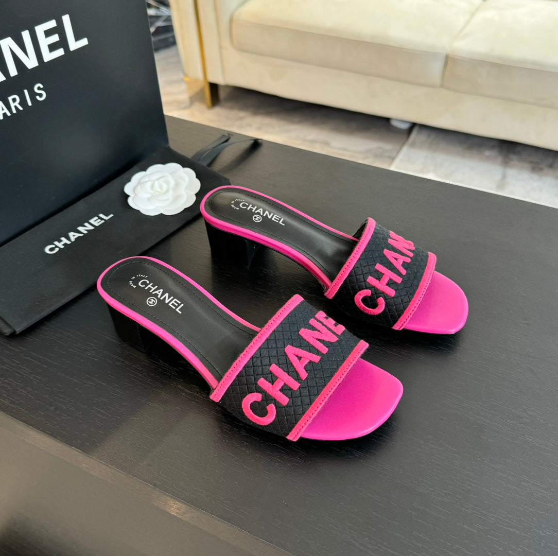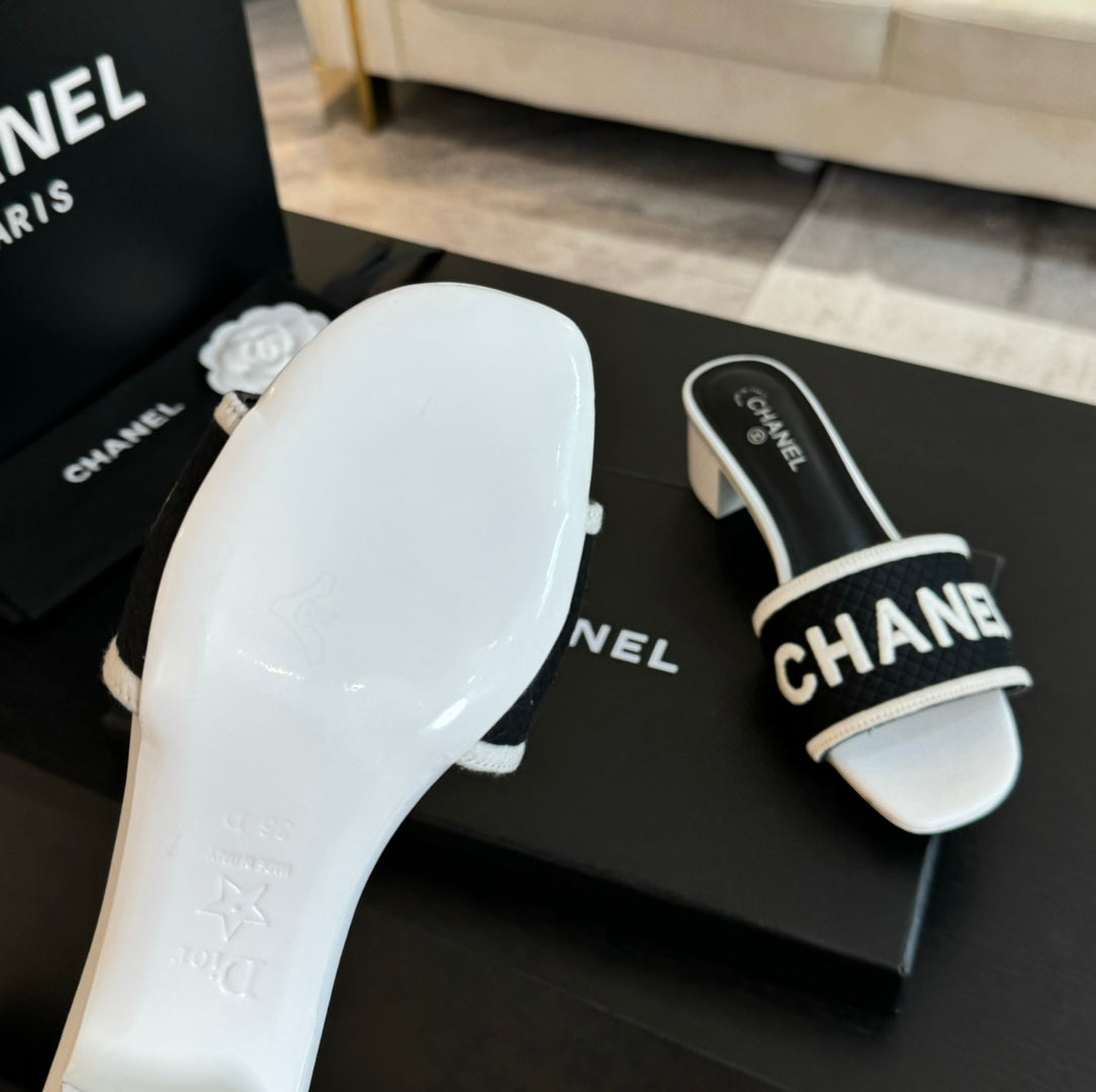 CC HIGH HEEL BLACK SATIN WITH RHINESTONES