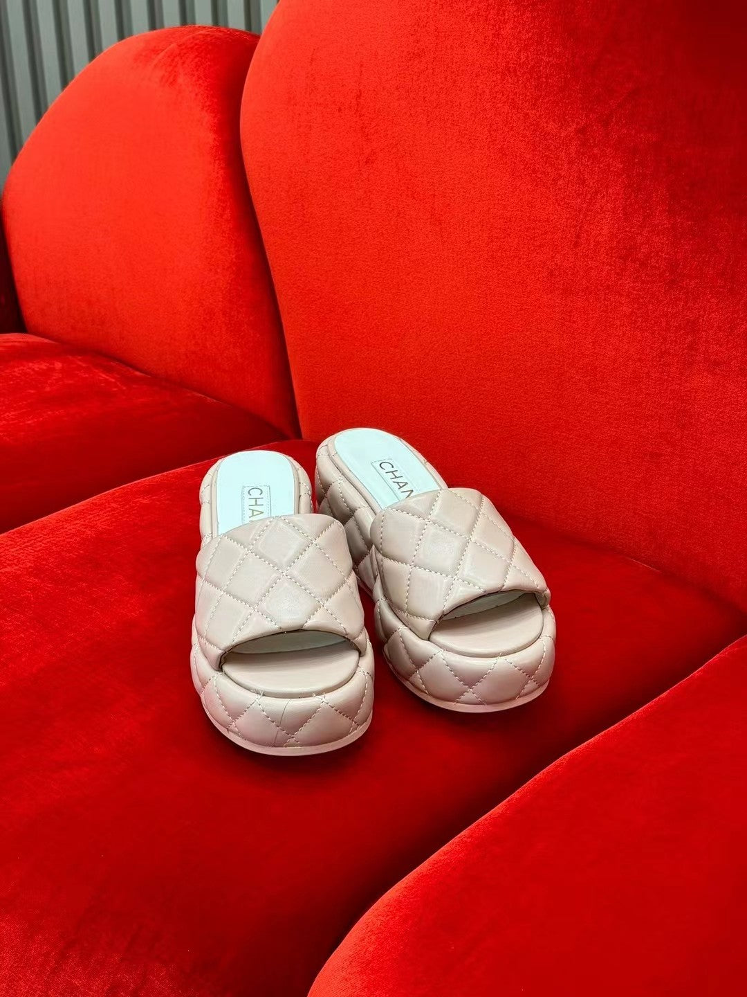 SLIPPERS BEIGE CREAM QUILTED LAMBSKIN