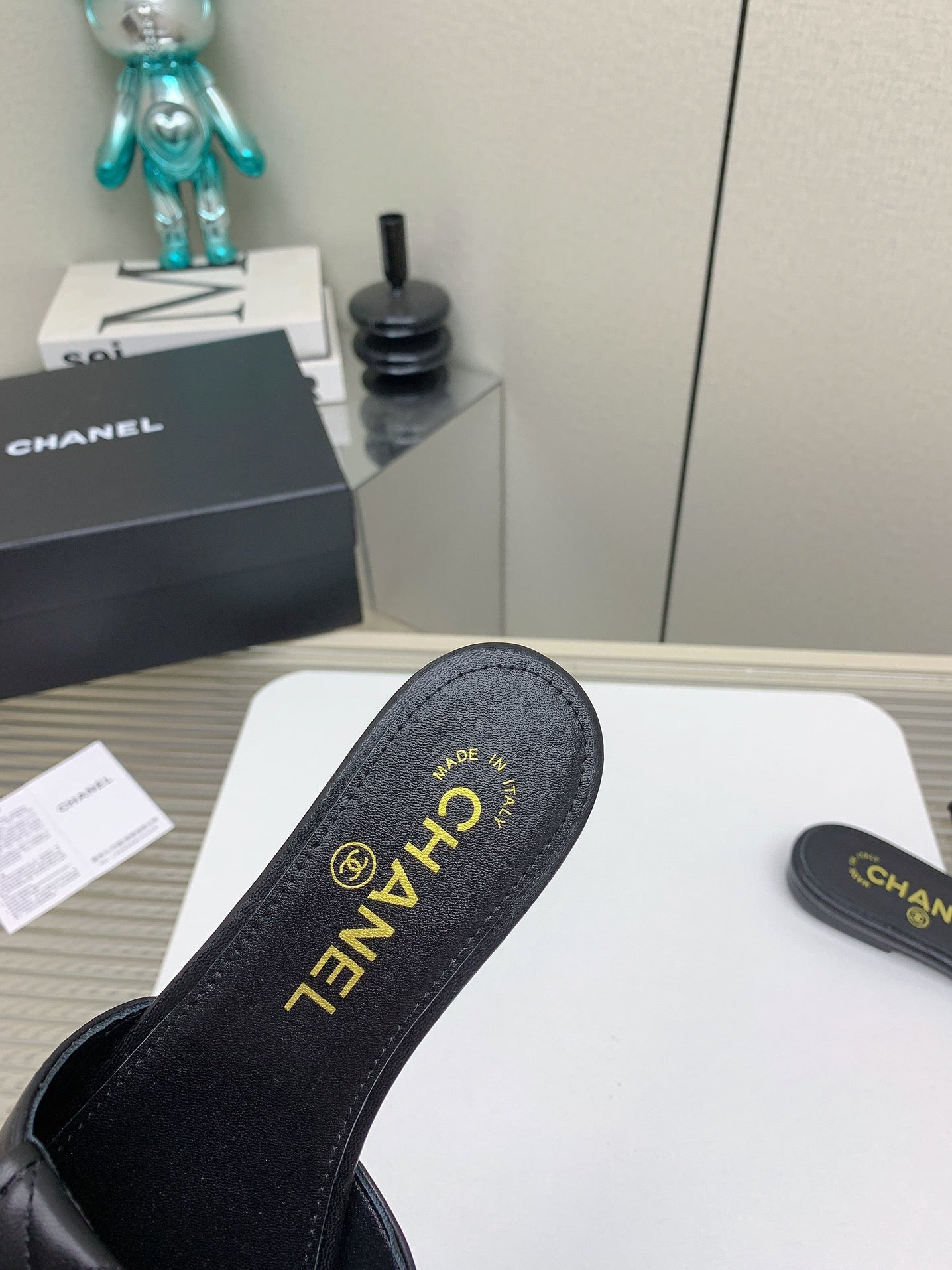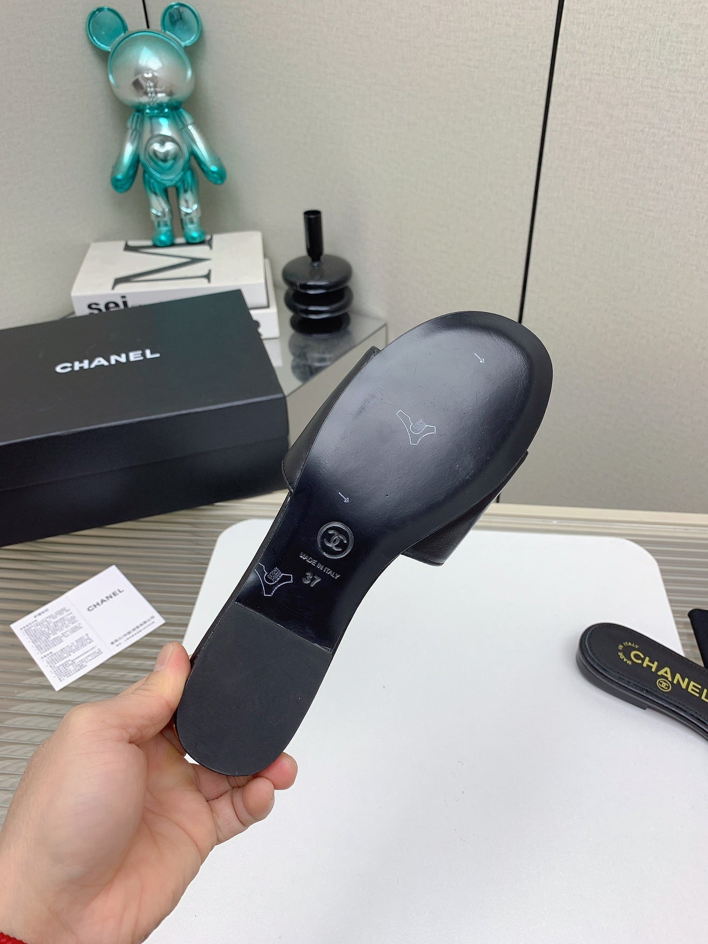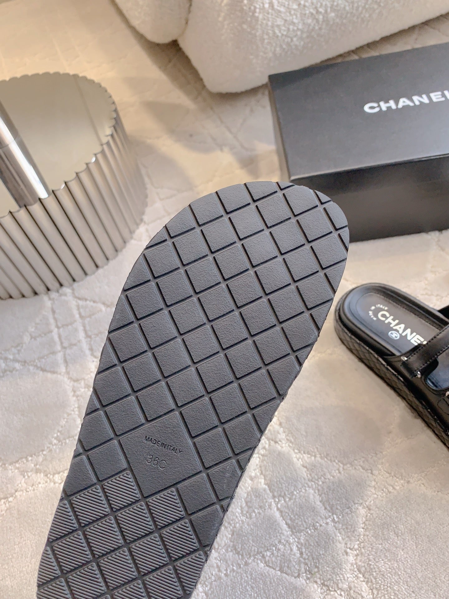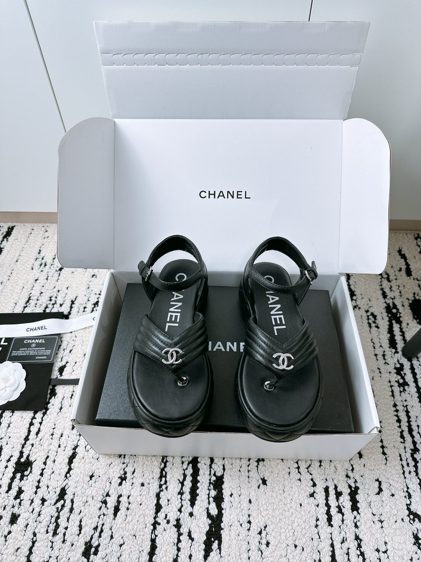 CC 25 Flip Flop Sandals Black Calfskin Espadrilles