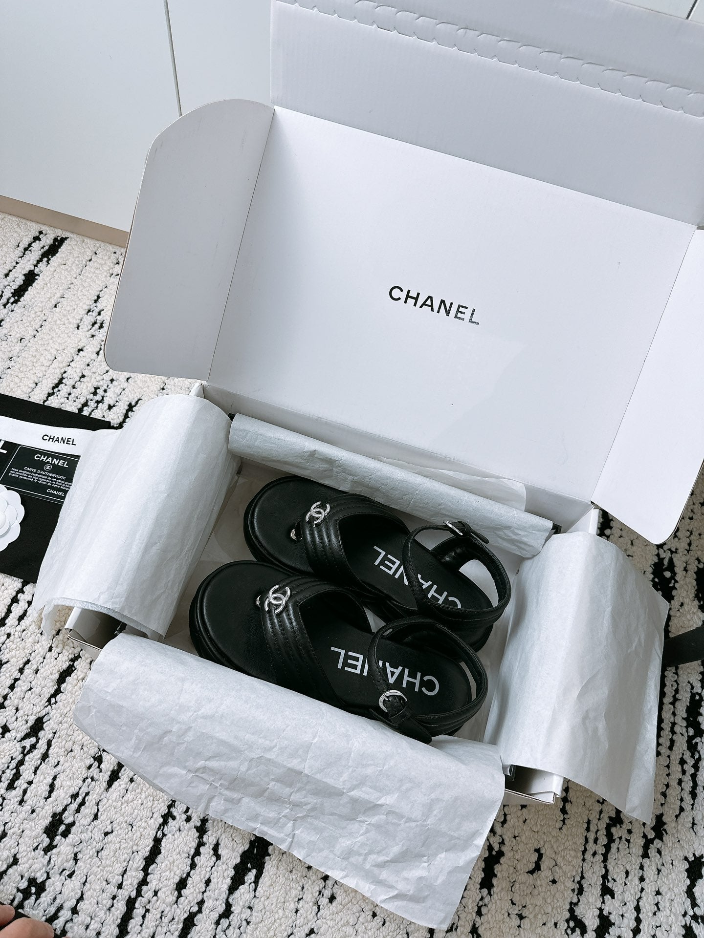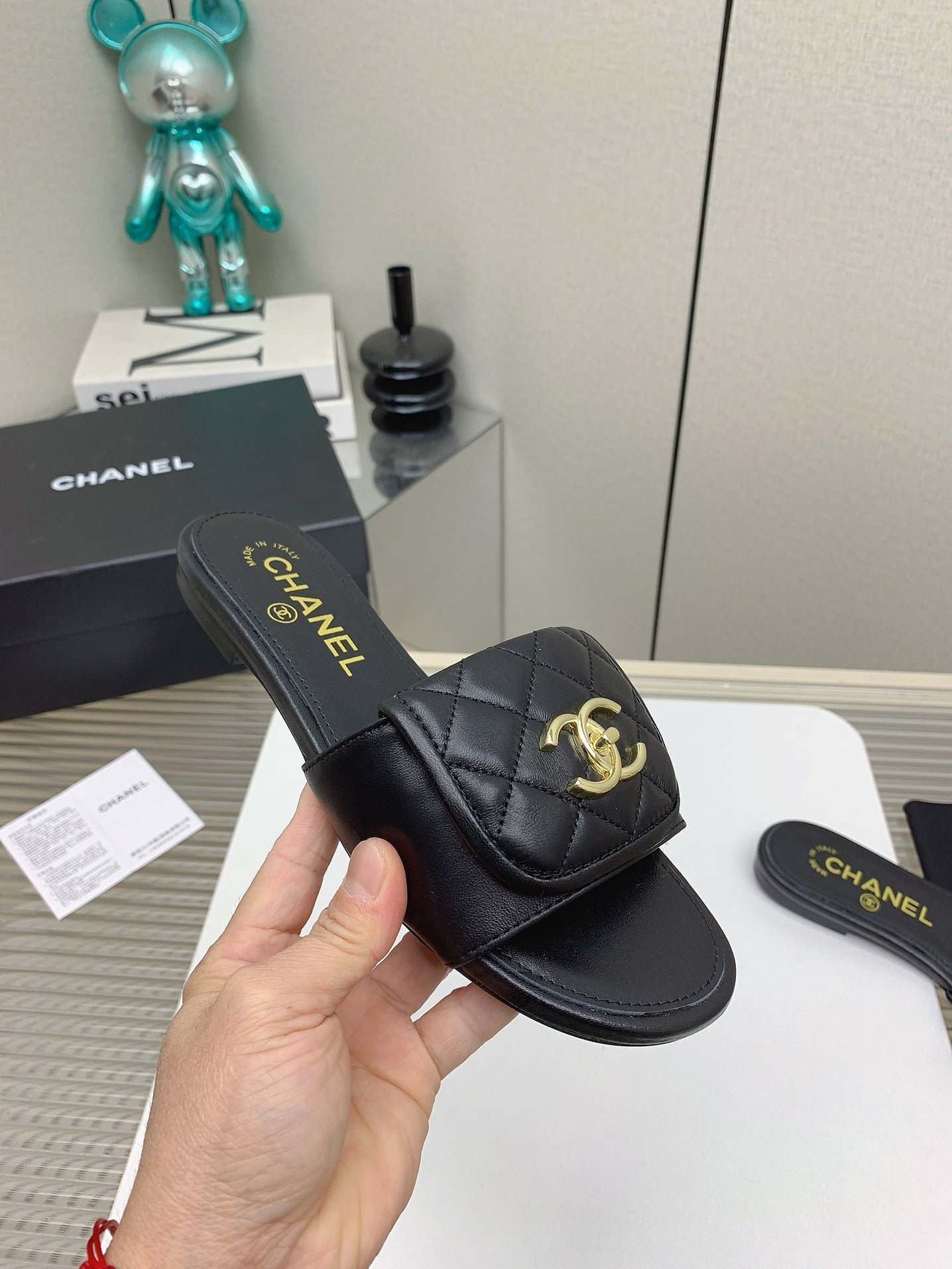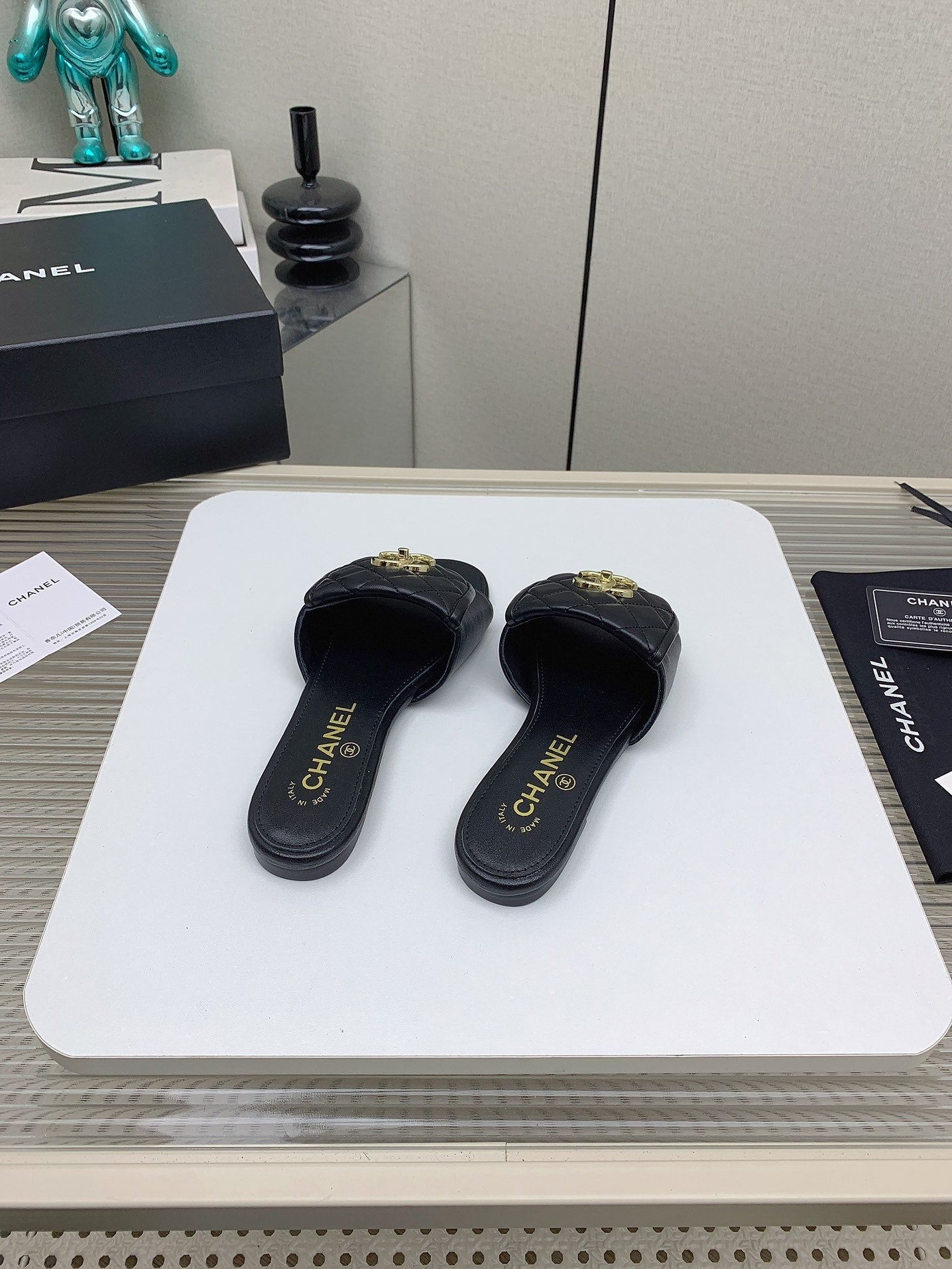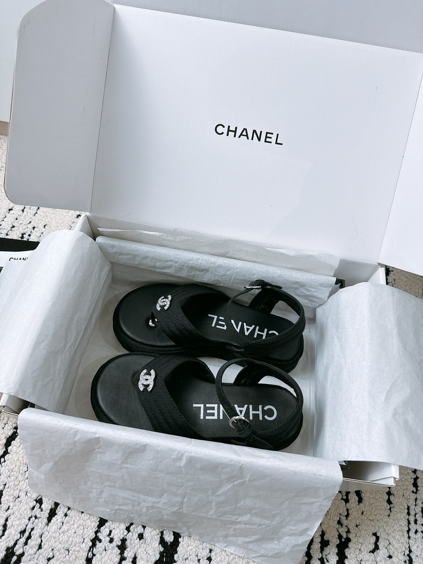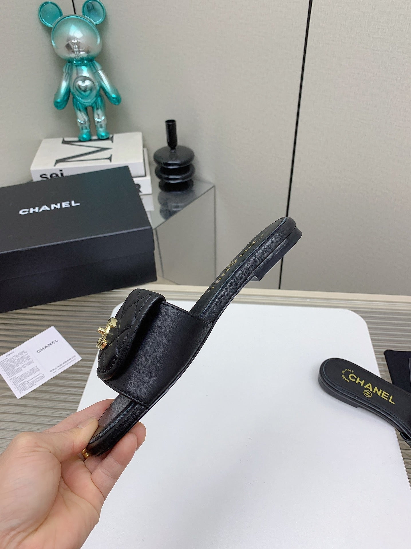 CC 25 Flip Flop Sandals Black Calfskin Espadrilles