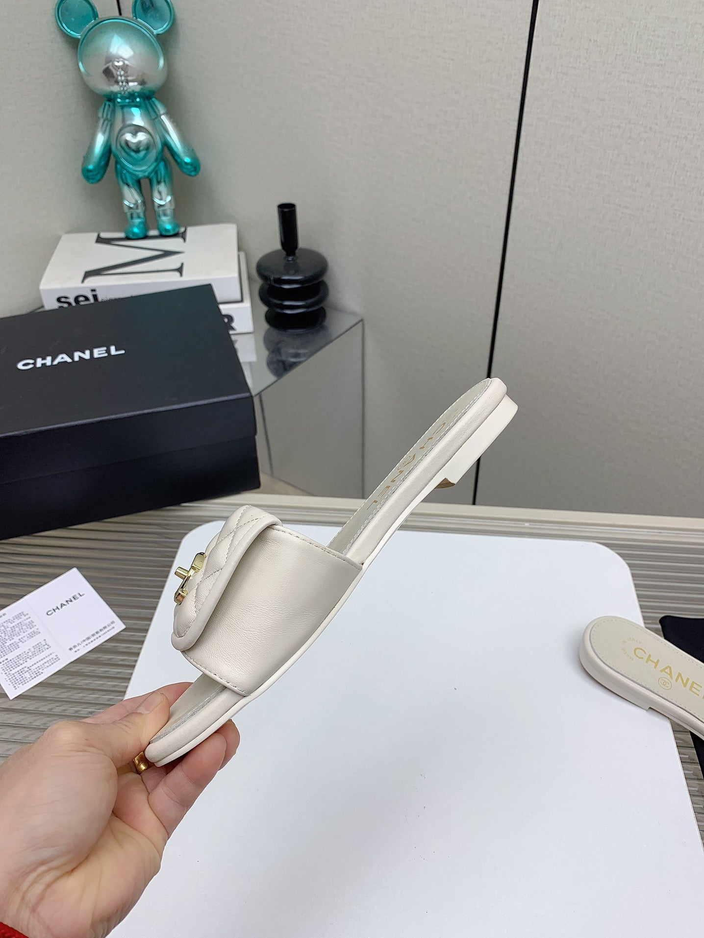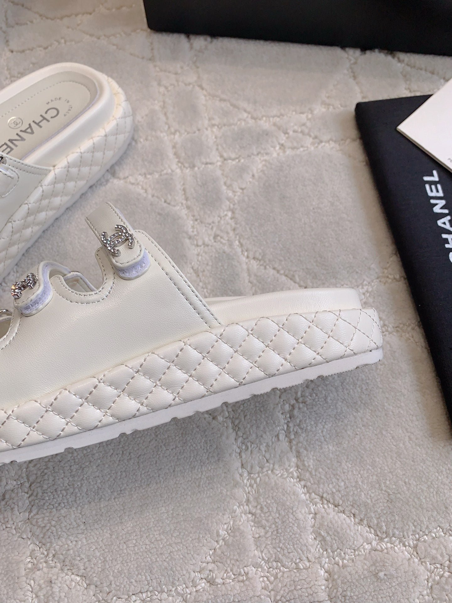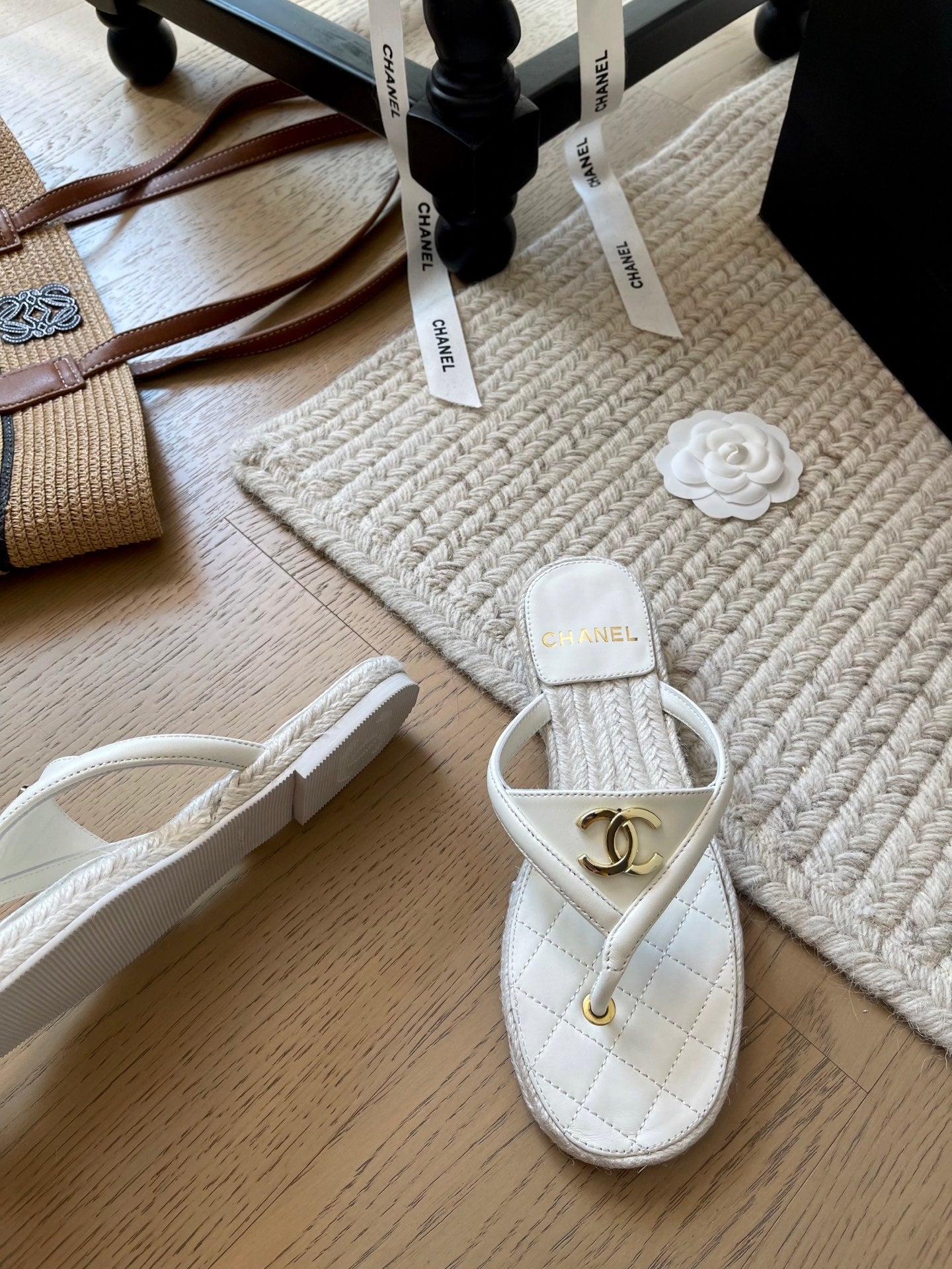 CC 25 Flip Flop Sandals White Calfskin Espadrilles