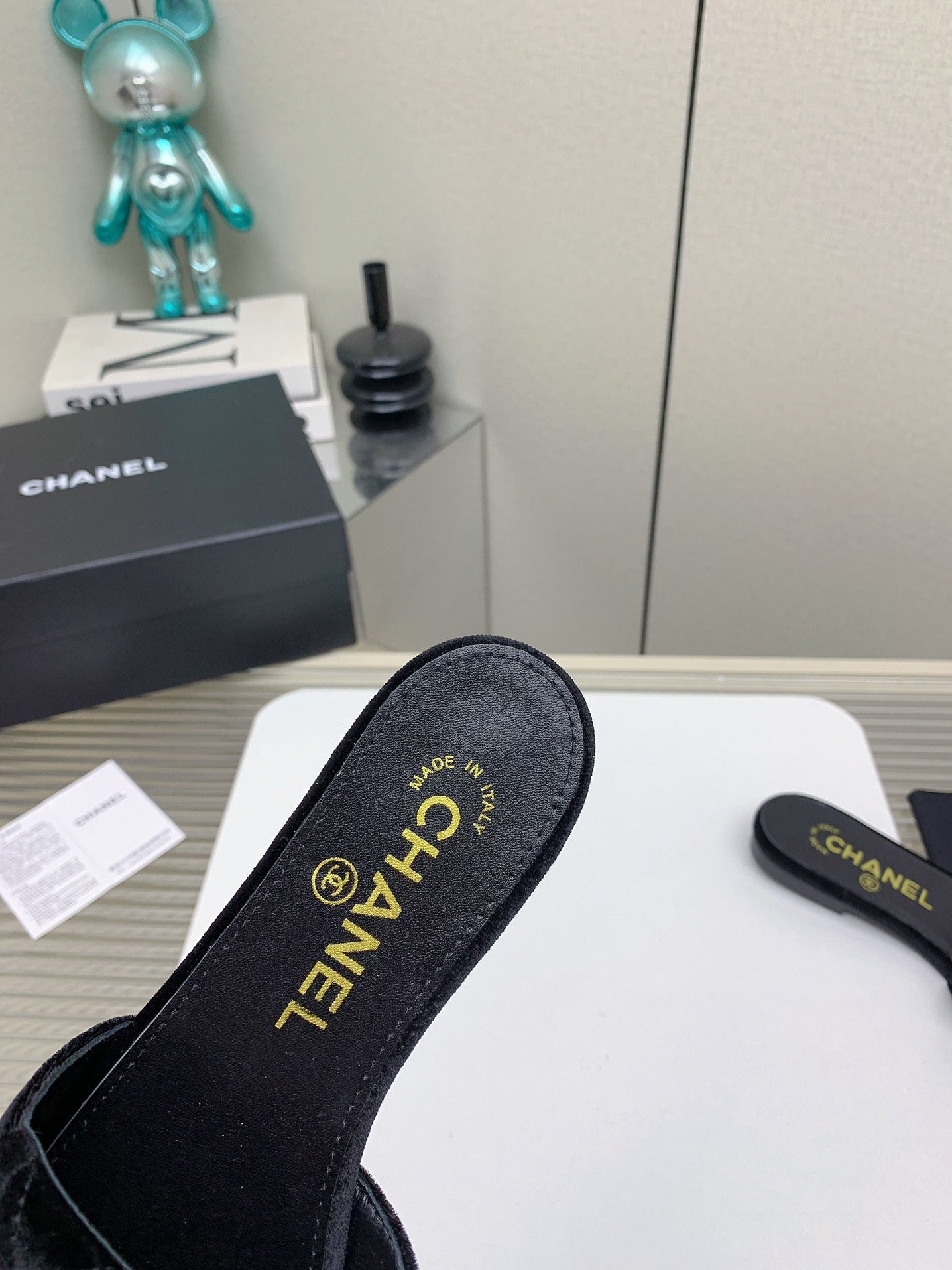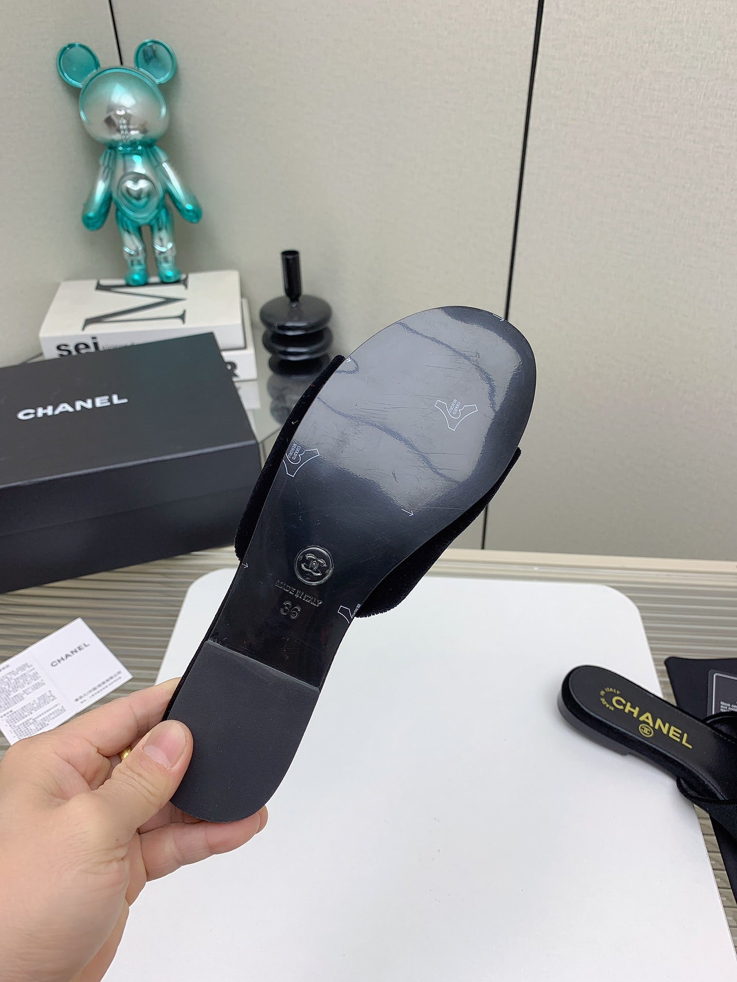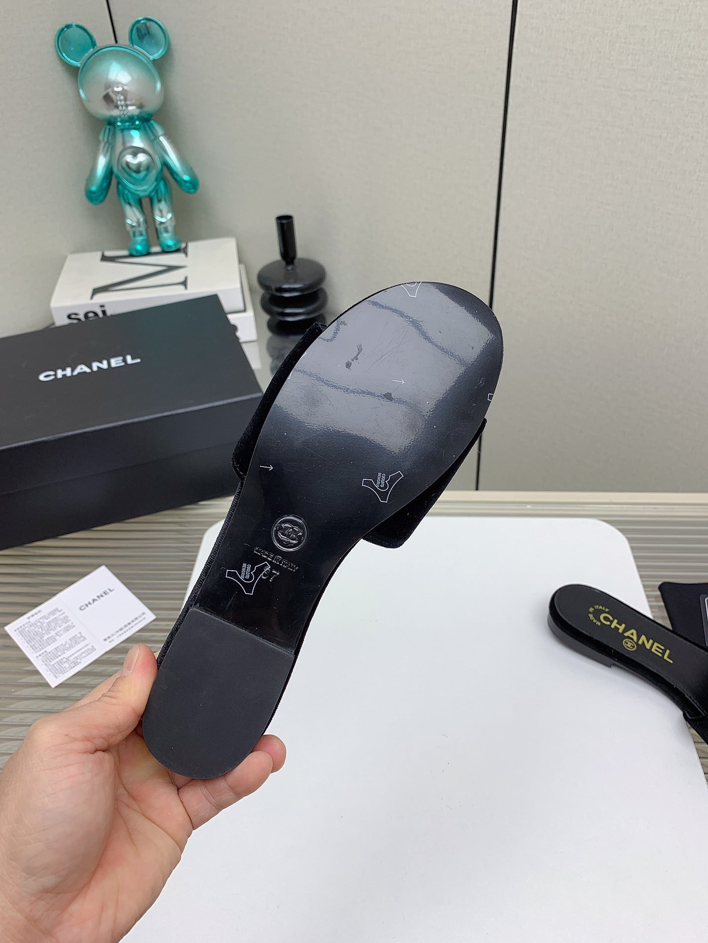 CC 25 Flip Flop Sandals Black Suede Calfskin Espadrilles
