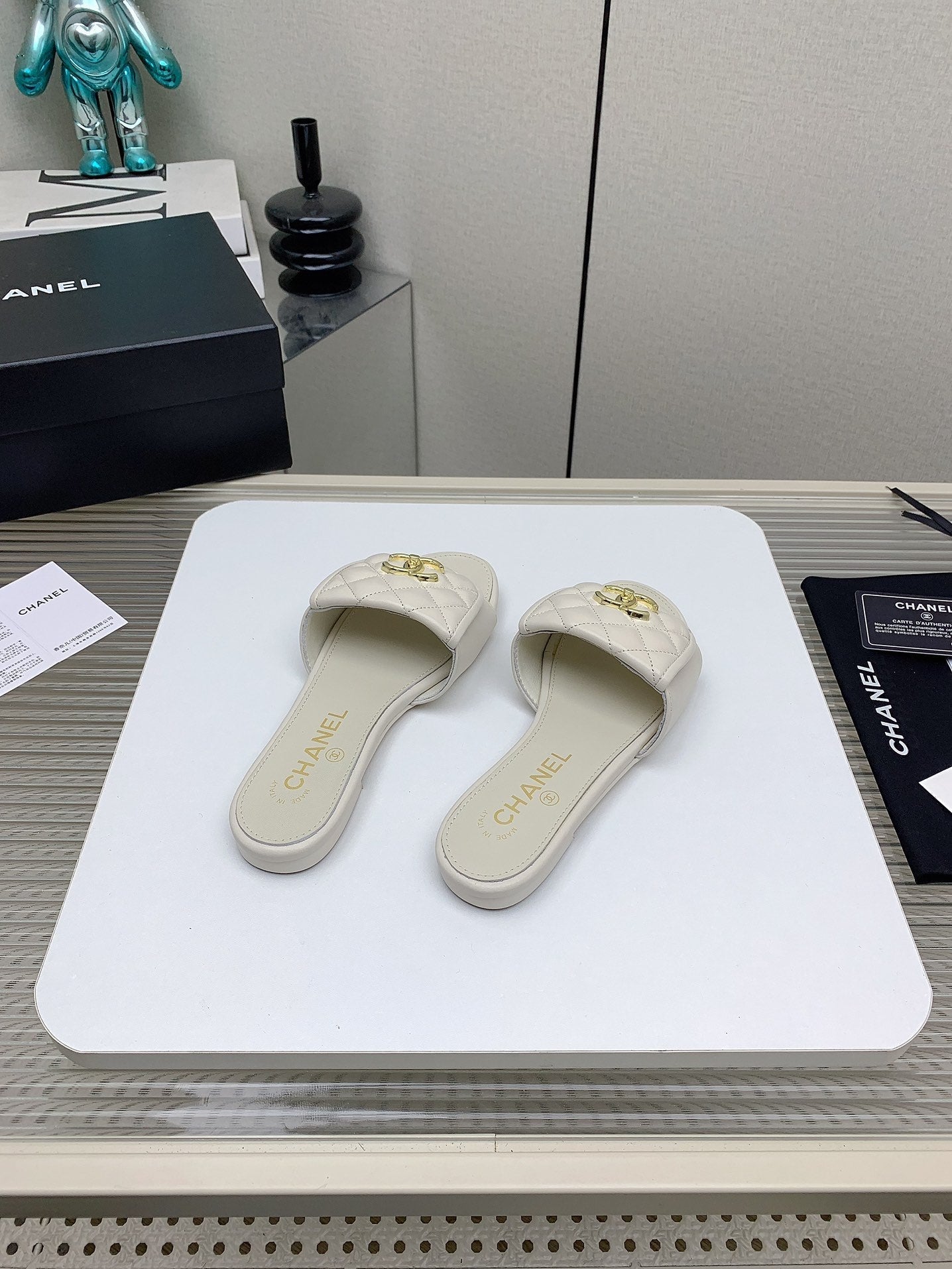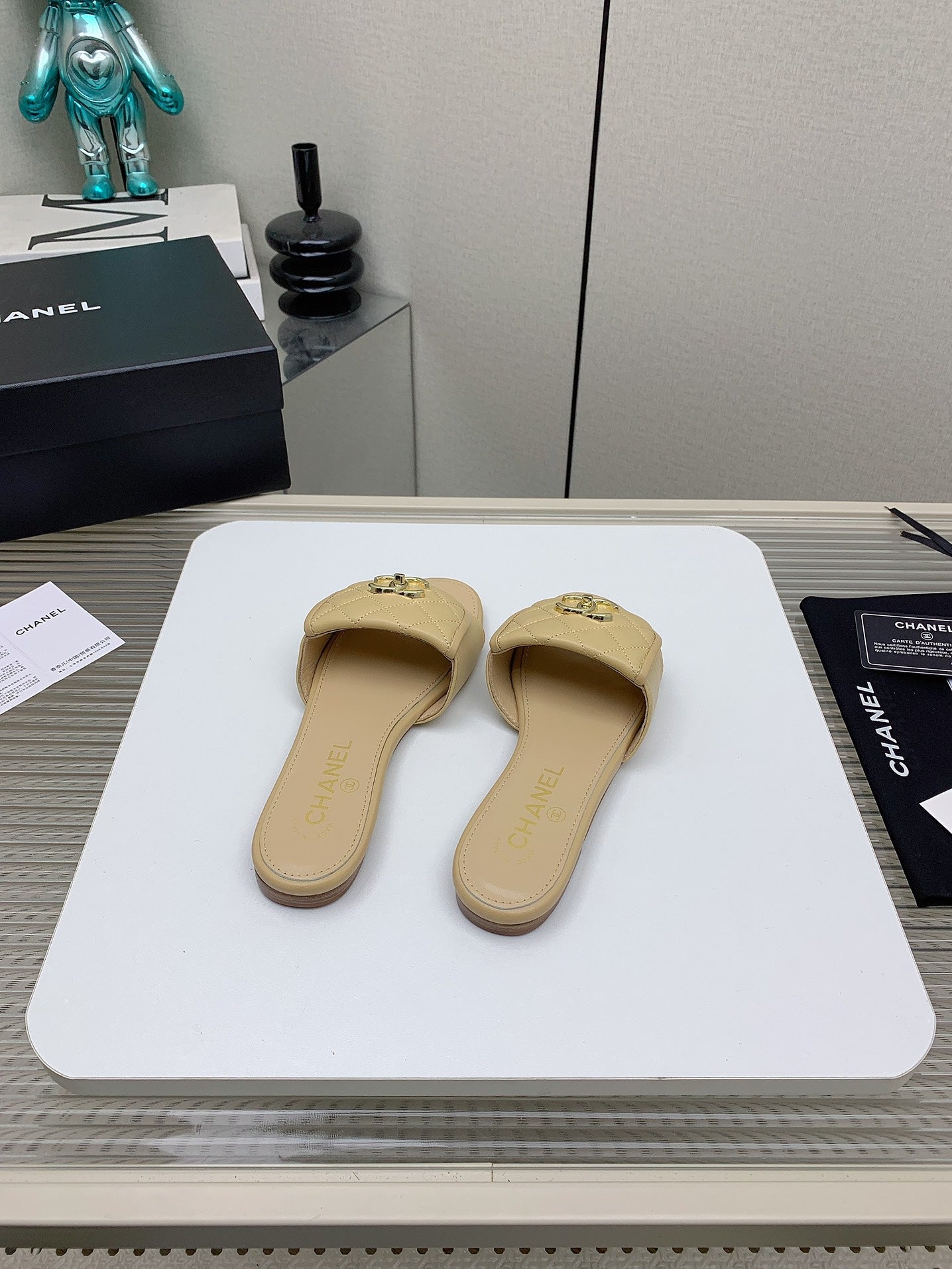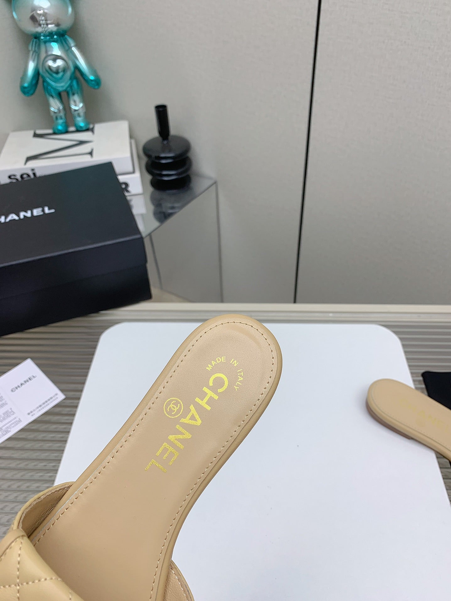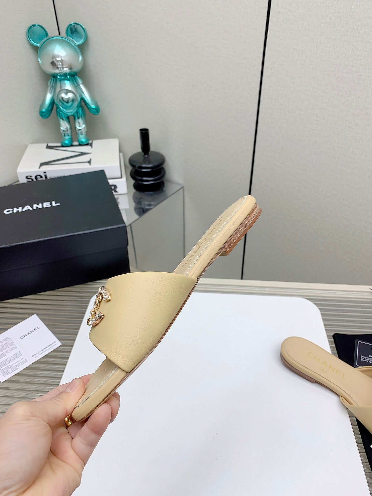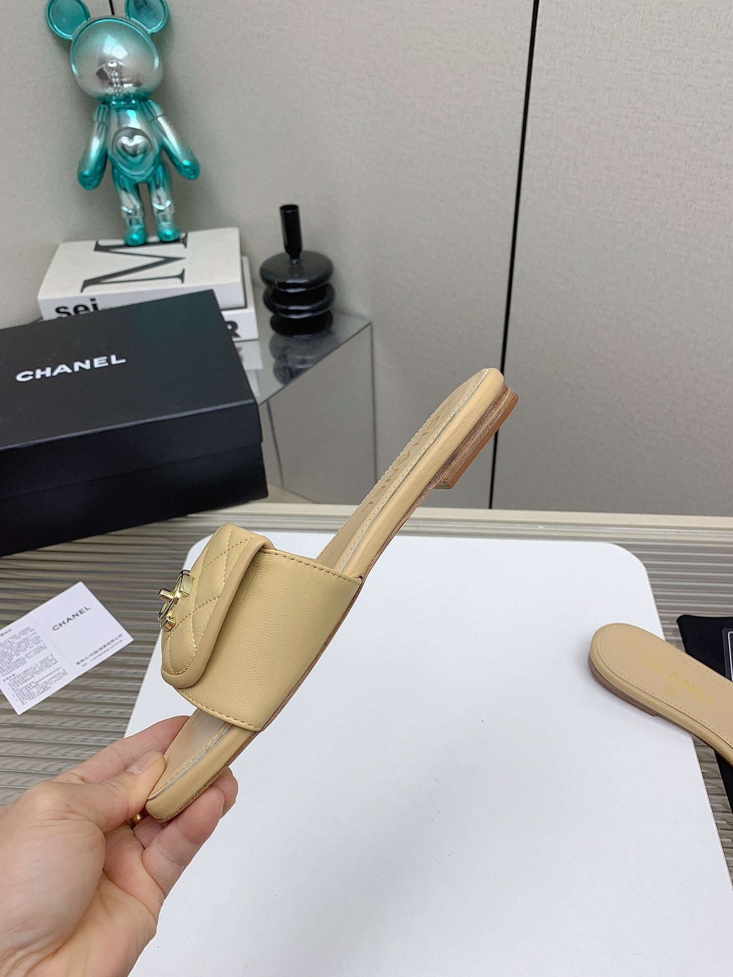 CC 25 Flip Flop Sandals Beige Calfskin Espadrilles
