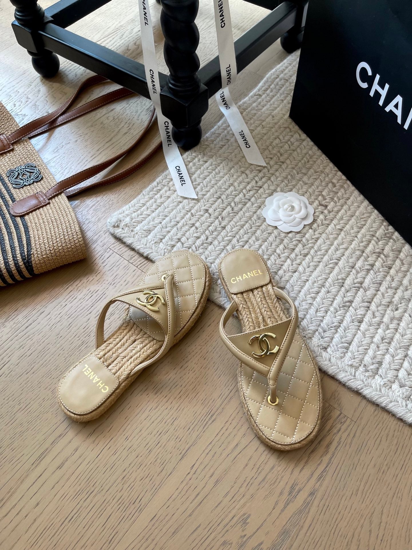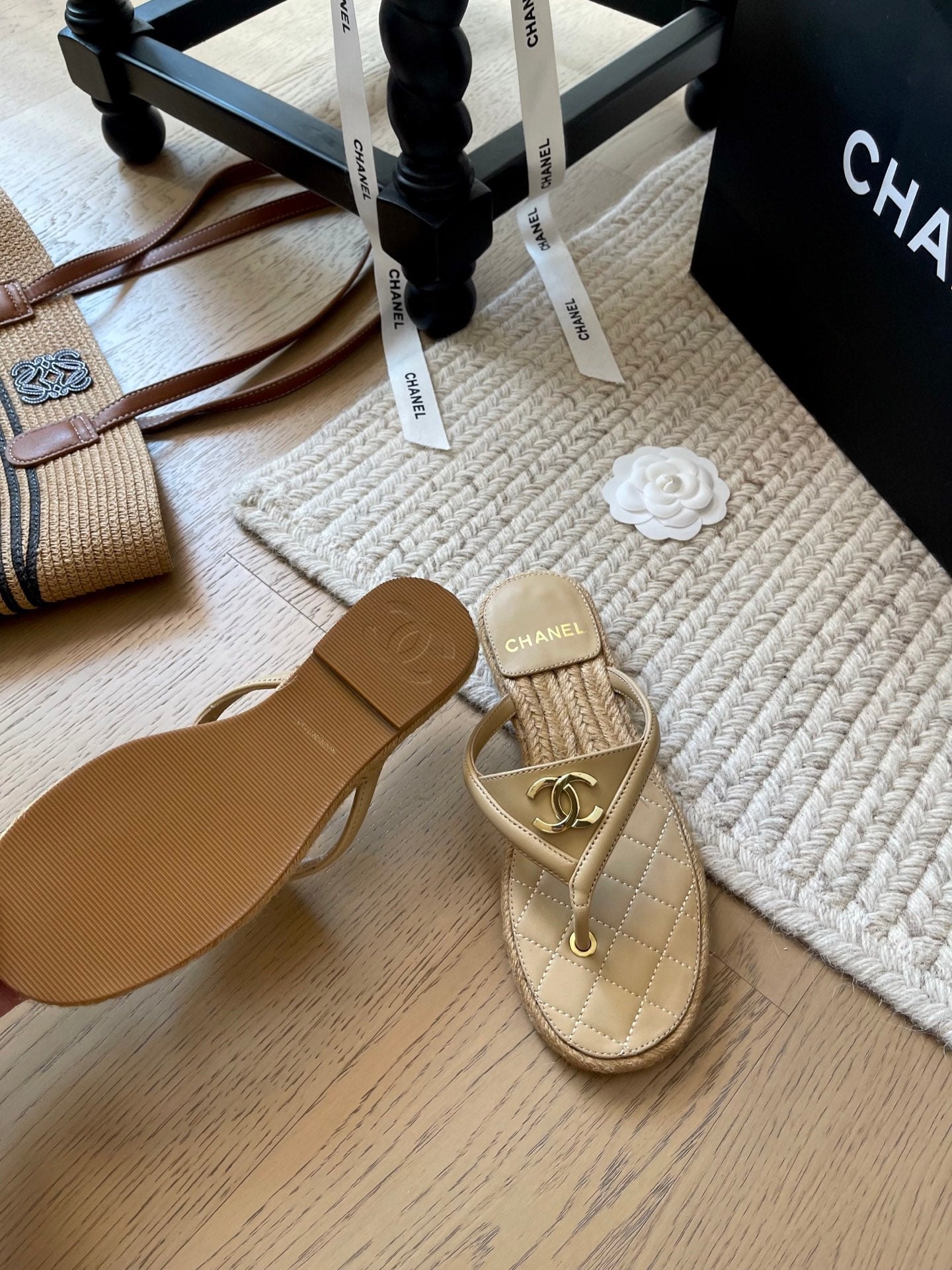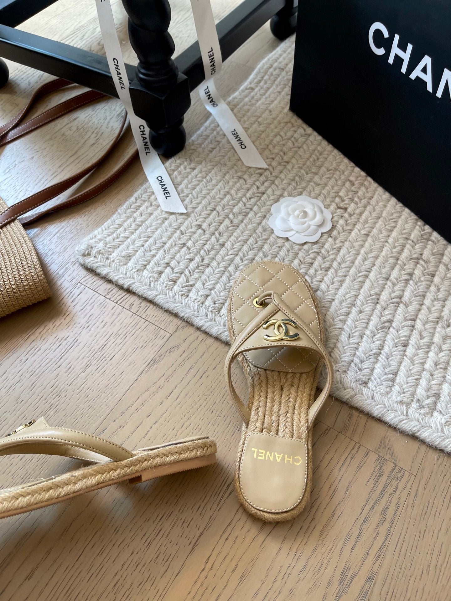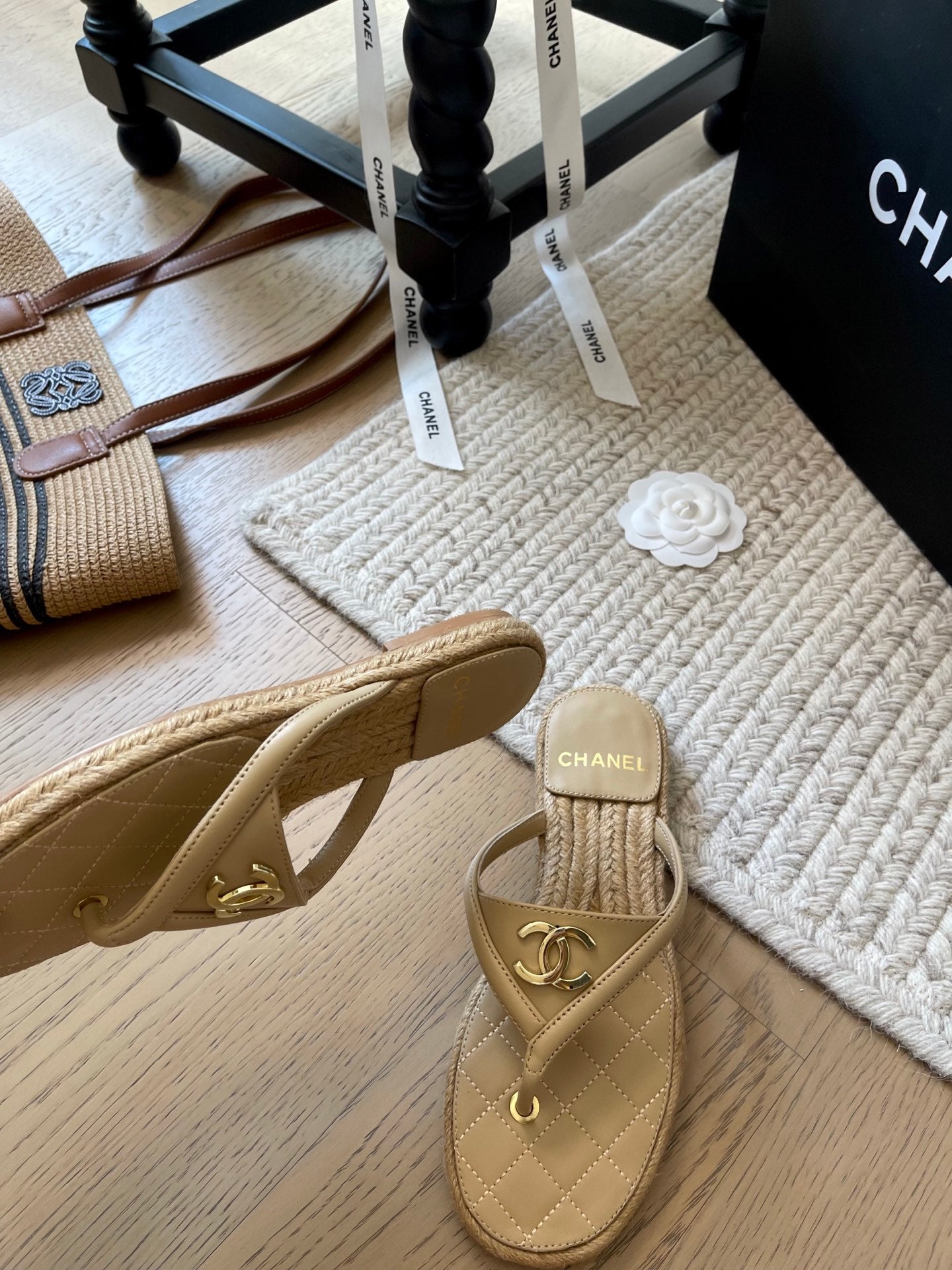 CC 25 Flip Flop Sandals Beige Suede Calfskin Espadrilles