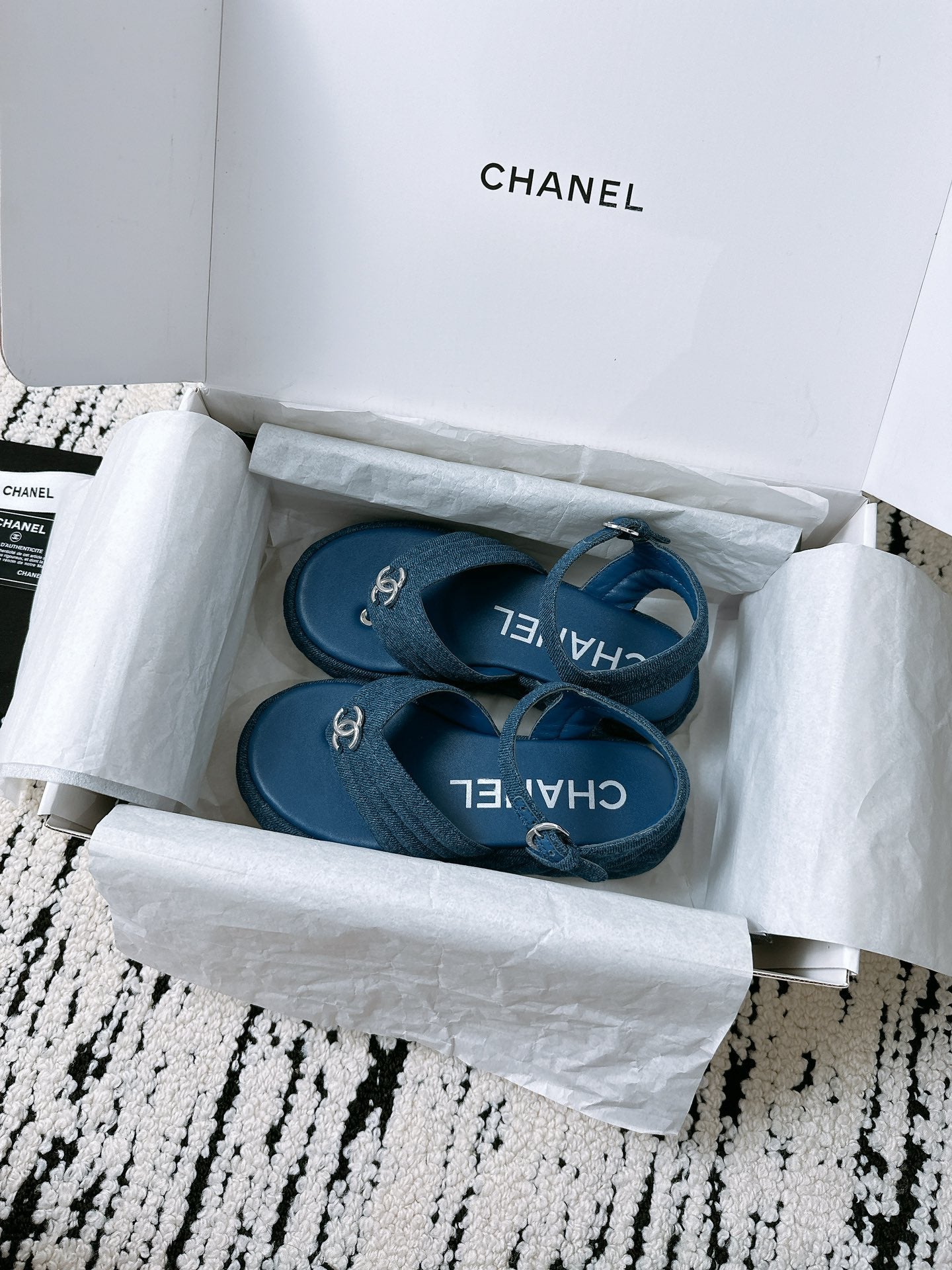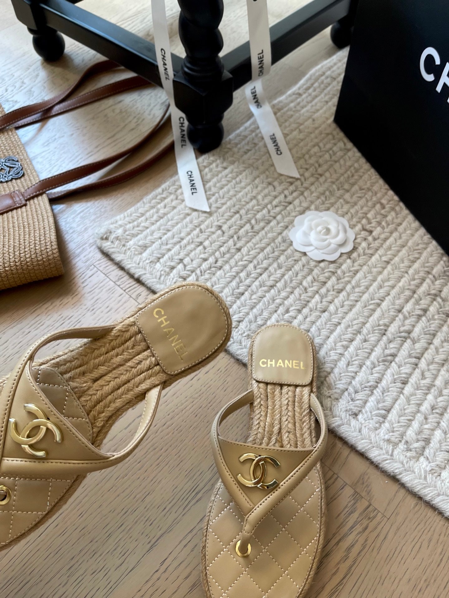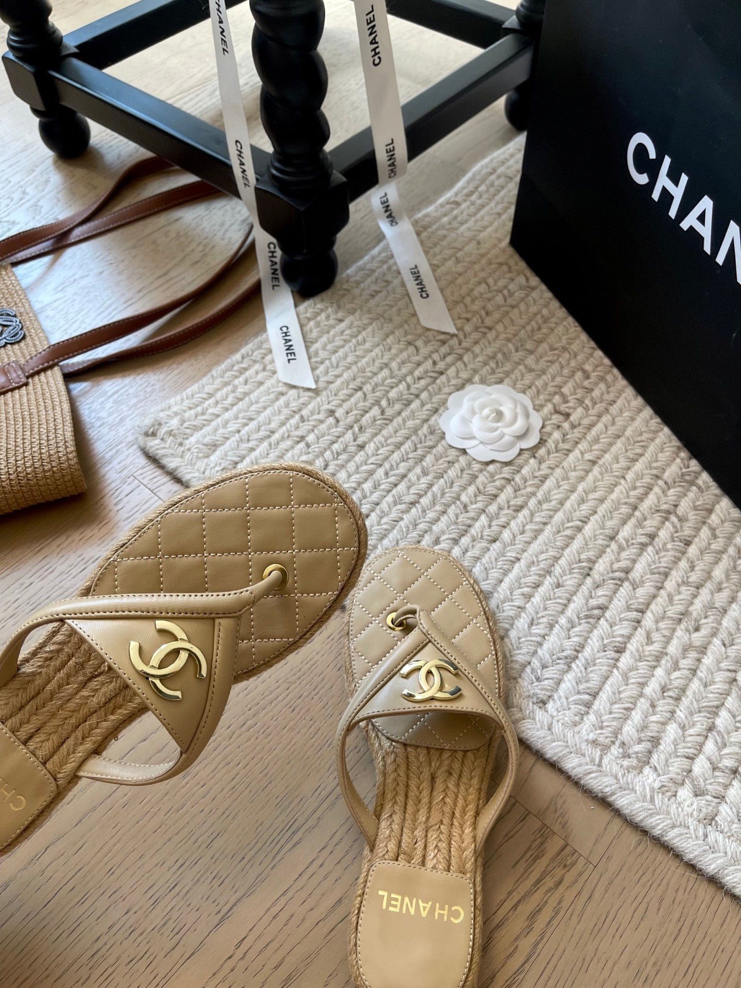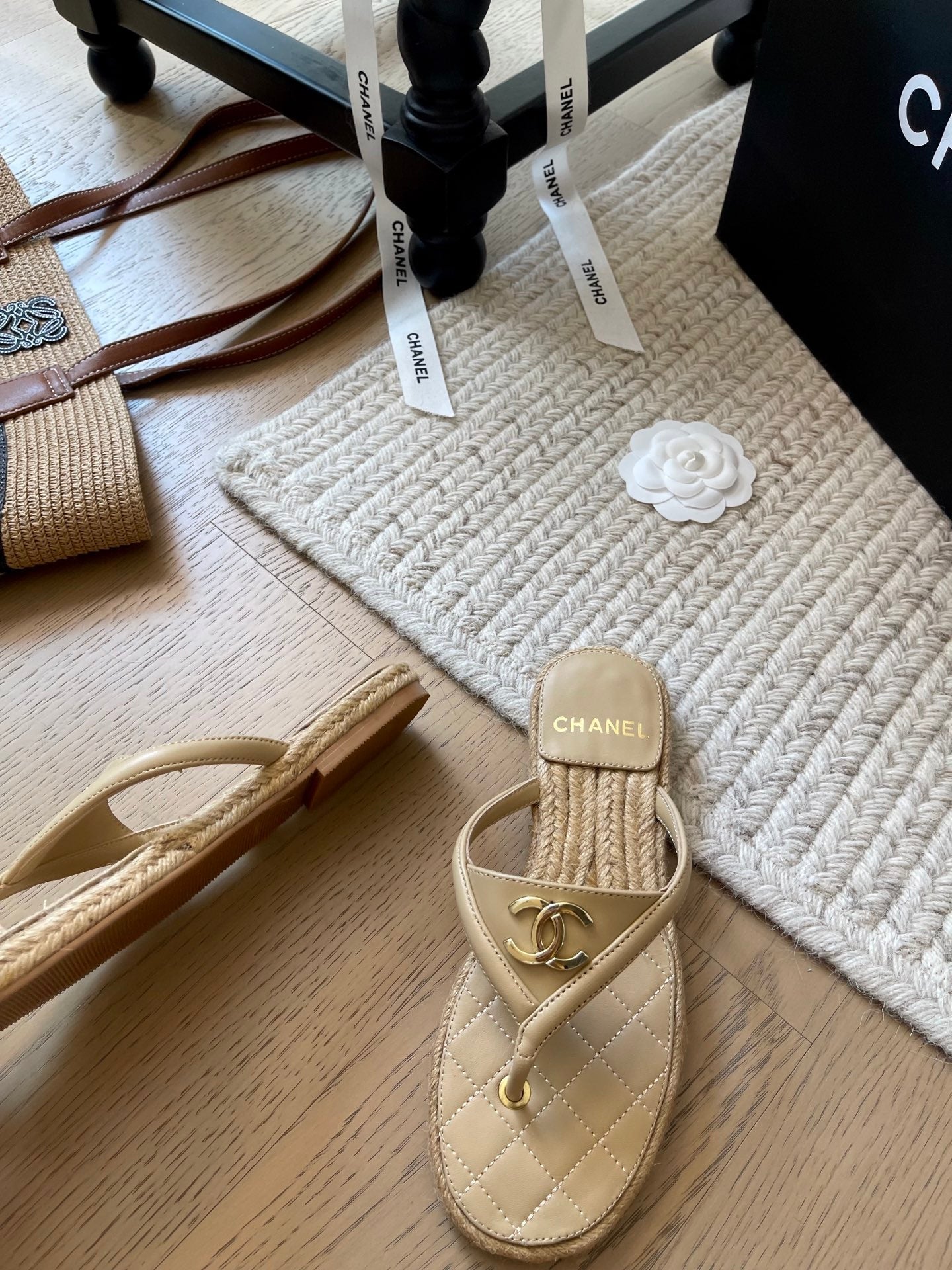 CC 25 Flip Flop Sandals Beige Suede Calfskin Espadrilles