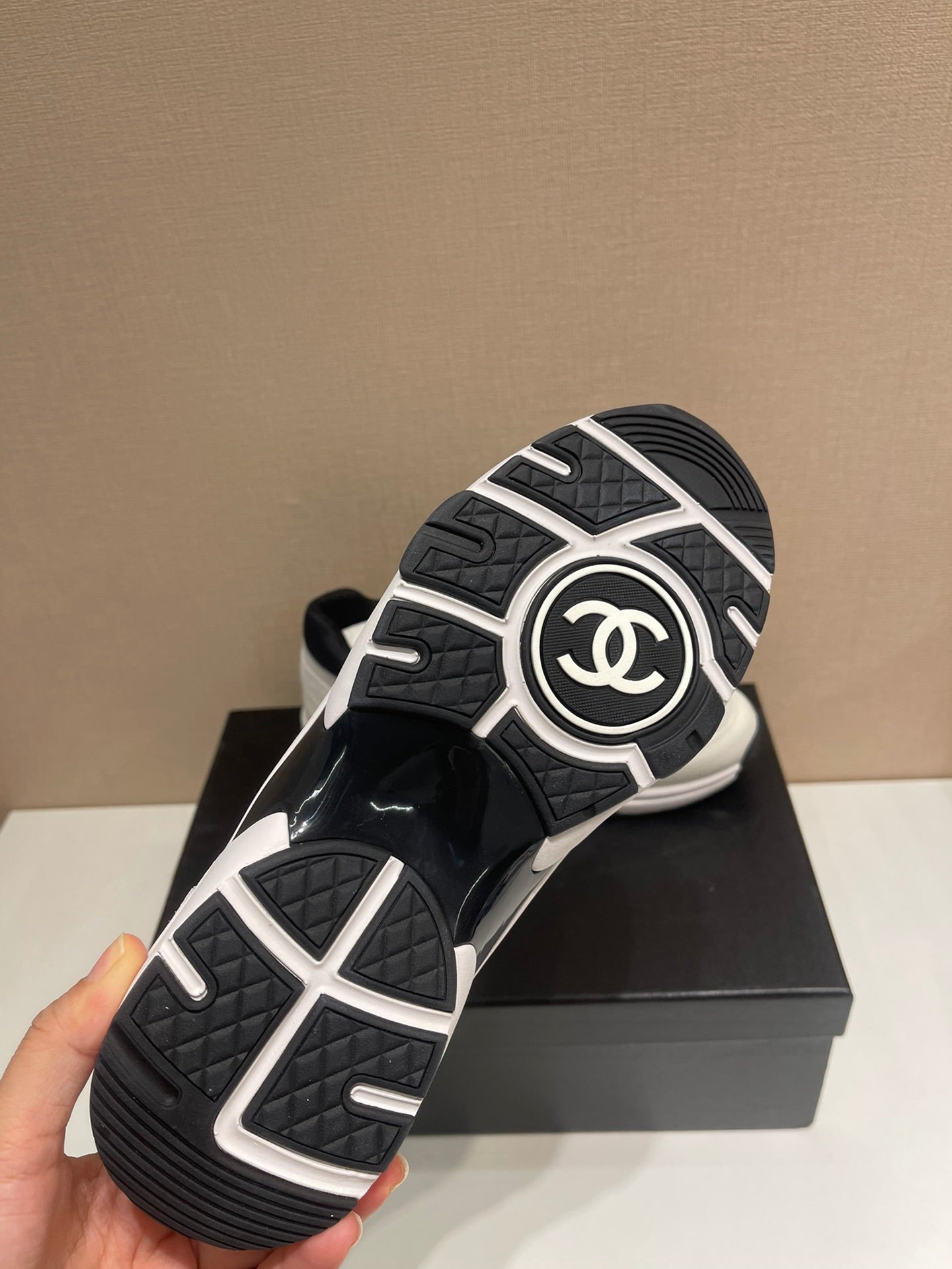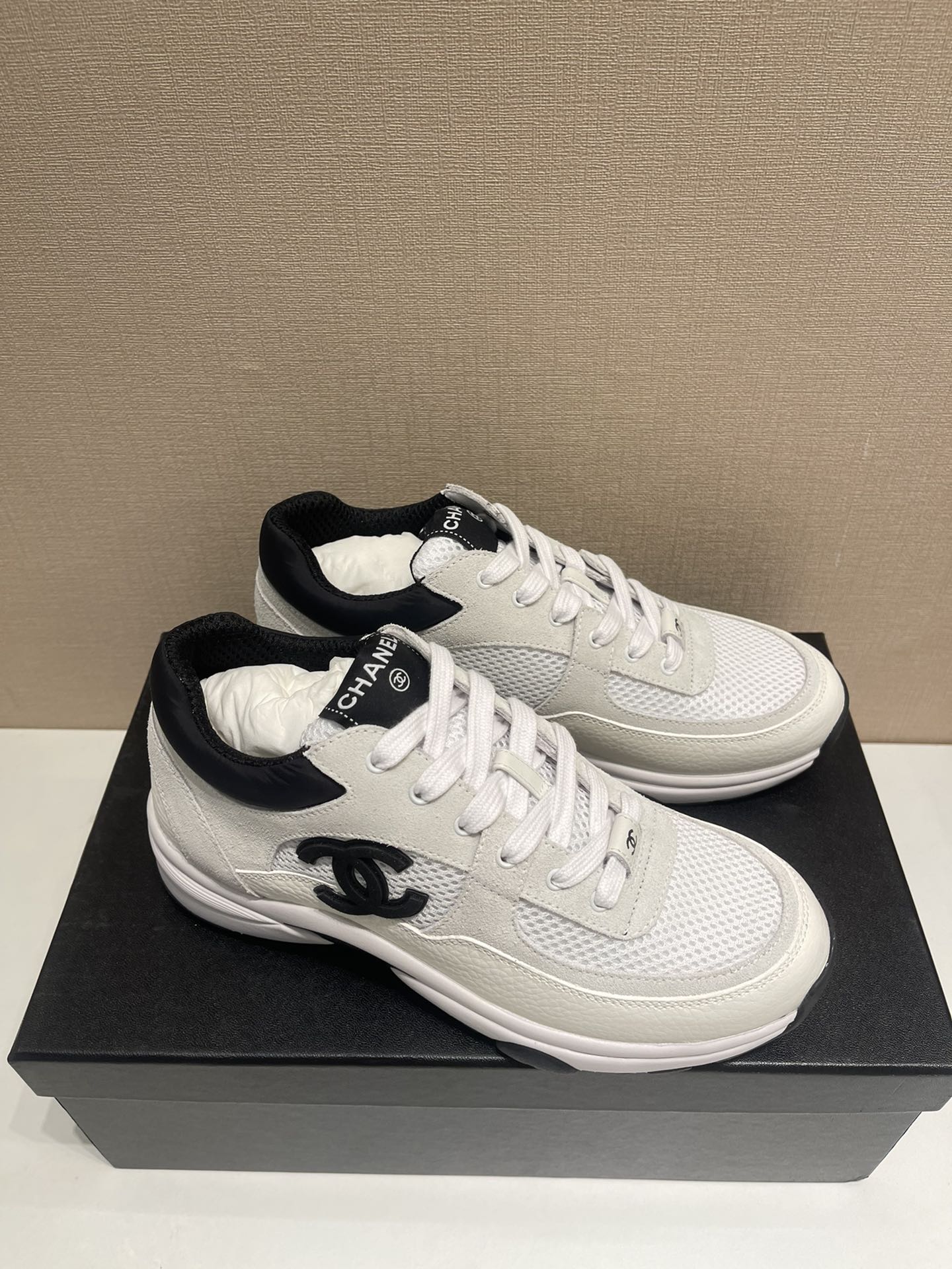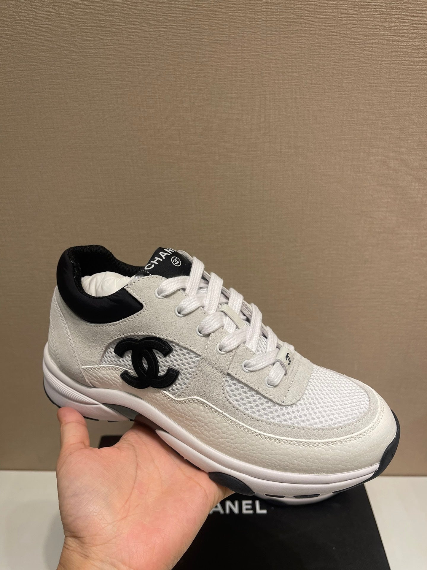 CC Sneaker White Mix Black Calfskin And Silk Parachute Fabric 947510