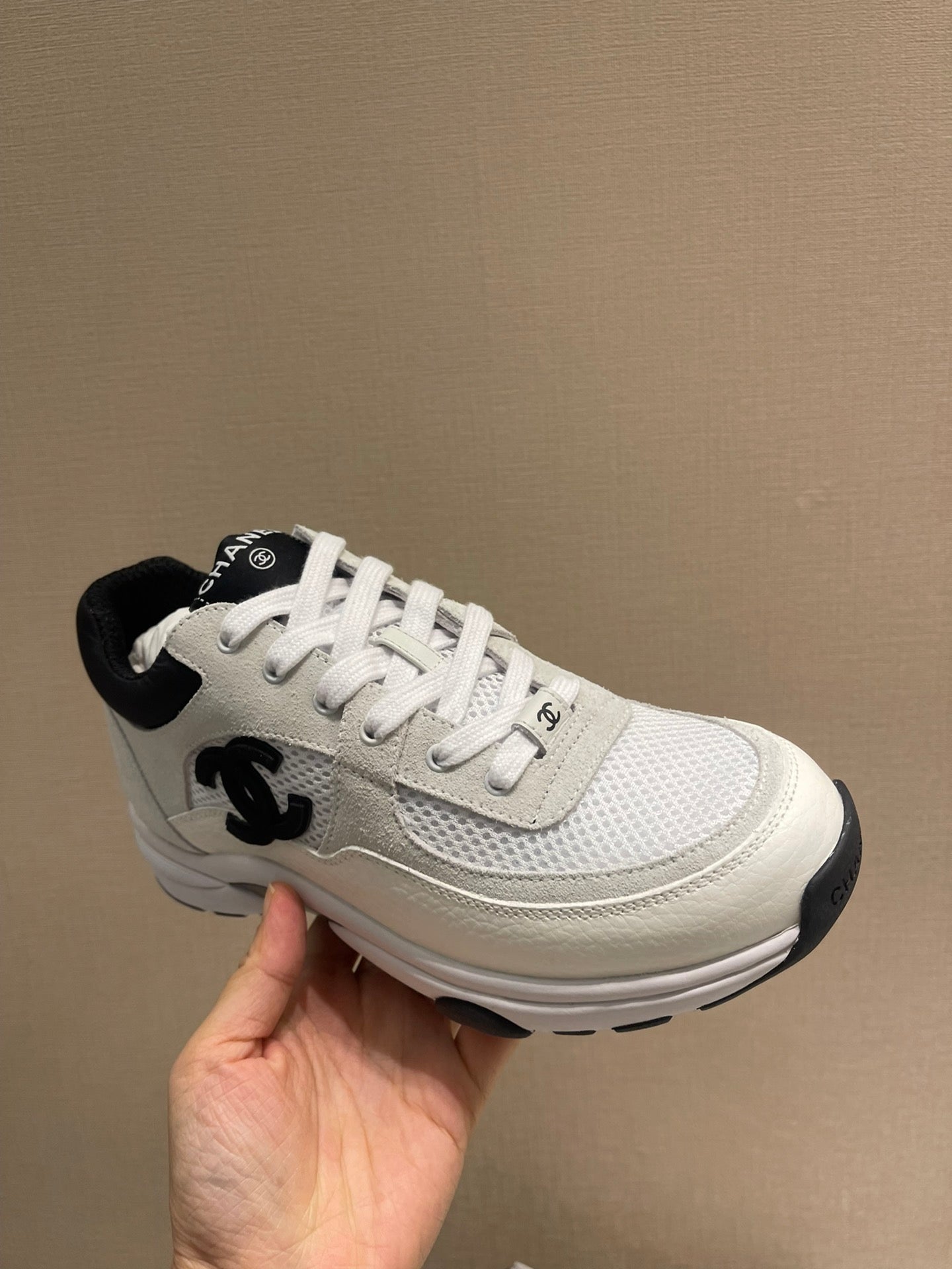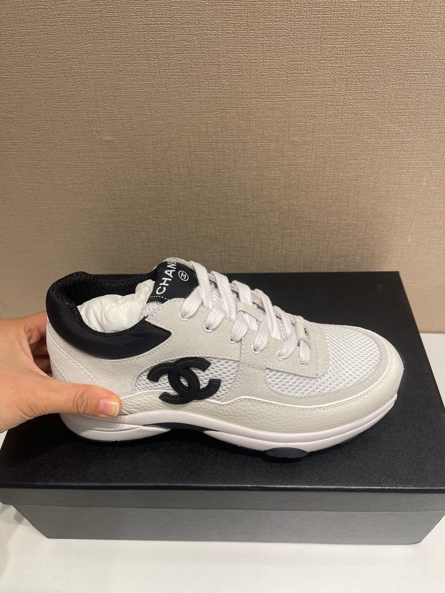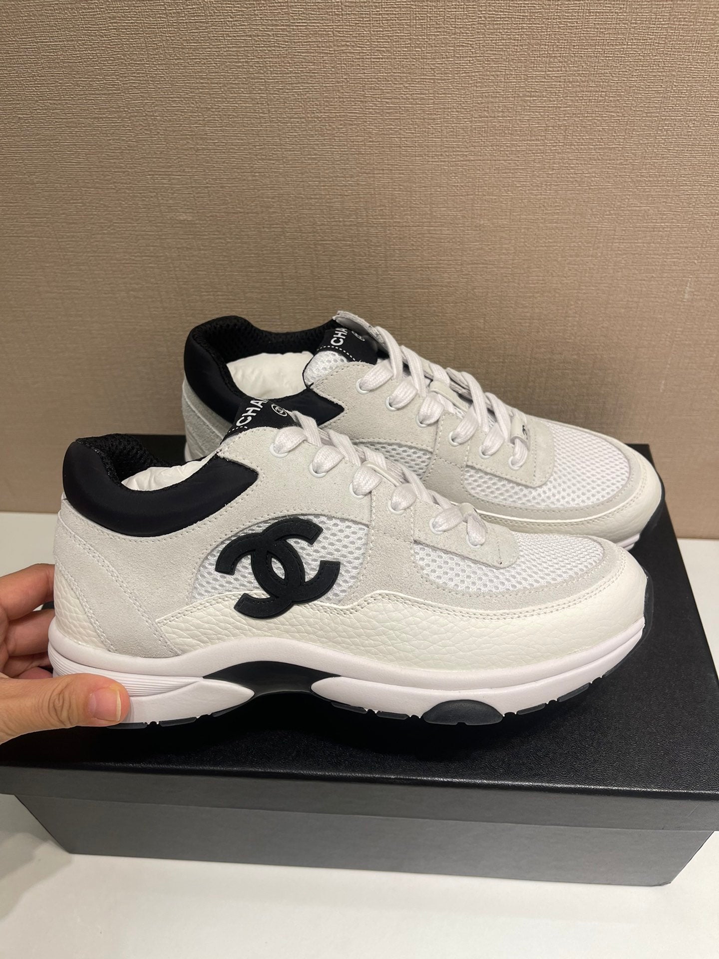 CC Sneaker White Mix Black Calfskin And Silk Parachute Fabric 947510