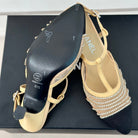 Crystal Flat High Heel Sandals Beige Cream