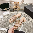 cc mule sandal tripe strap 40 beige canvas calfskin