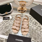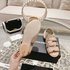 cc slingback sandal tripe strap beige canvas calfskin