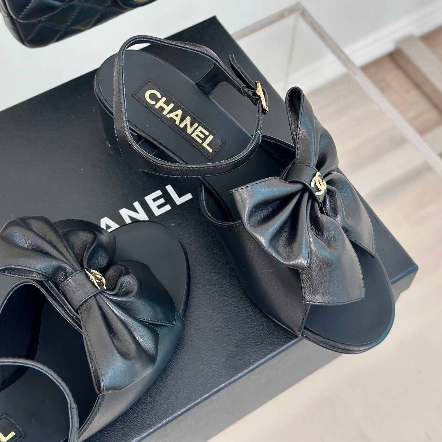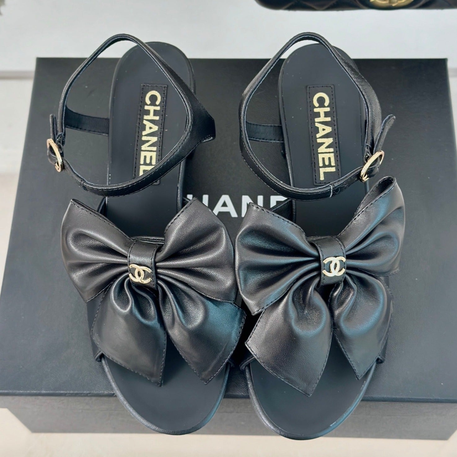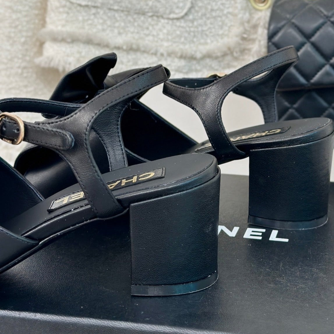 cc big bow slingback sandal 60 black lambskin