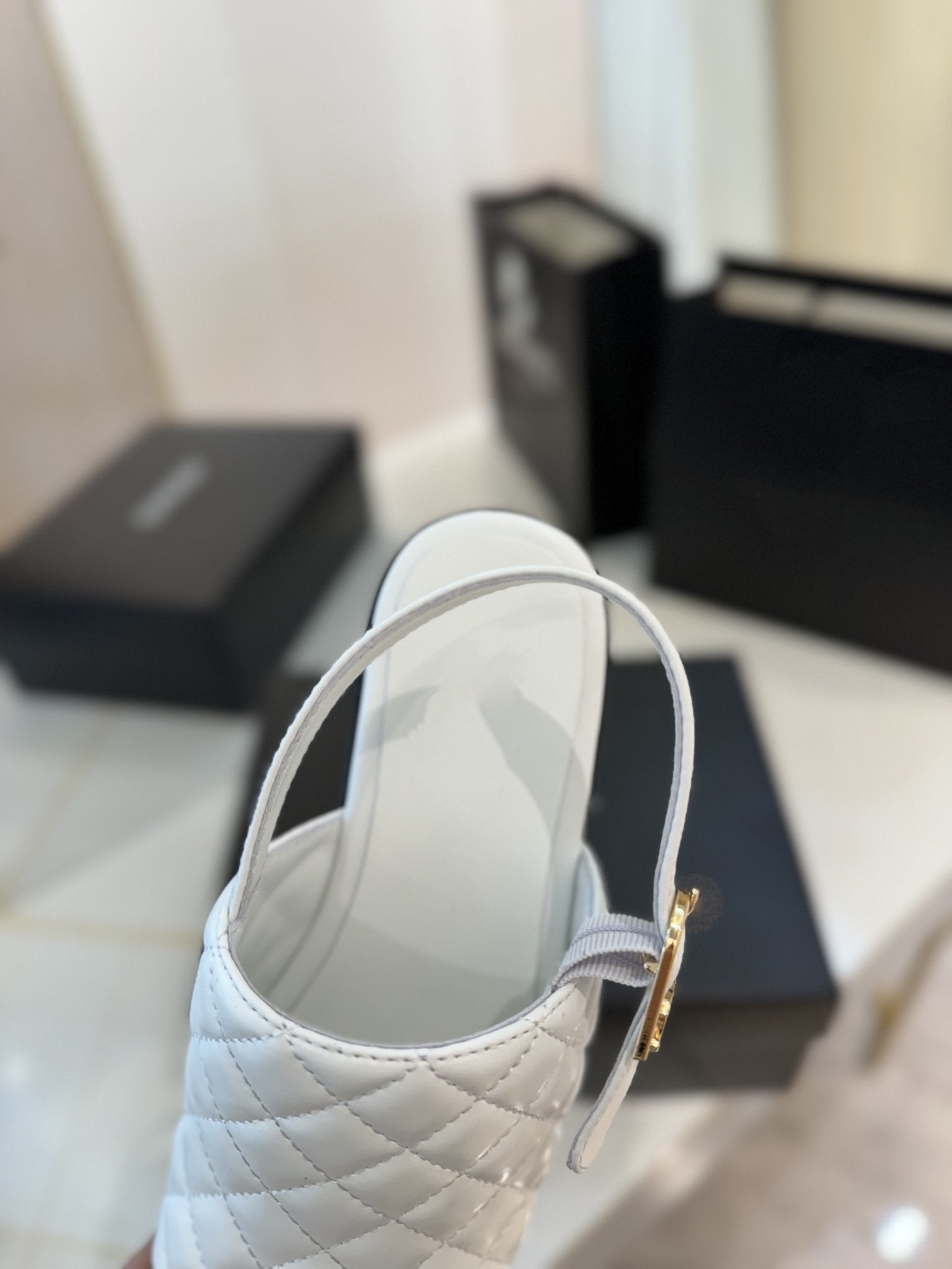 high heel 100 slingback sandal white black quilted calfskin